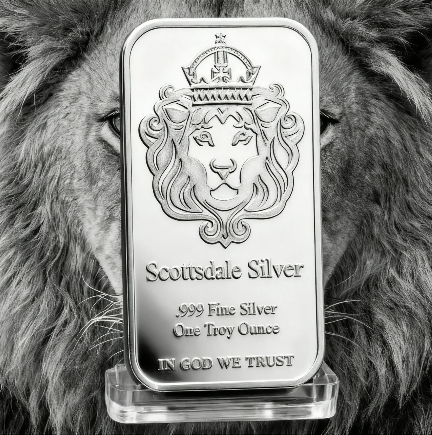 The engraved crowned lion mirrors Scottsdale Mint's decades of iconic strength and trust, a tribute to the artistry
