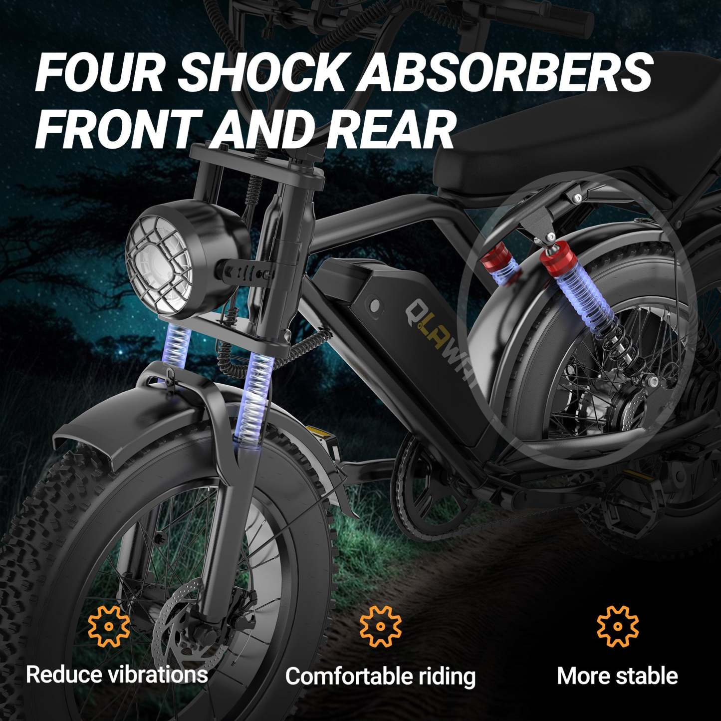 - 【750W MOTOR】–Qlaway 750w ebike with copper wire winding brushless motor, peak 1500W, provides a top speed of 31MPH,climbing slope 30 degrees.80 Nm of torque provides strong power for e dirt bike.7-speed gears + famous brand derailleur, smooth speed switching during riding, giving you a comfortable and smooth riding experience