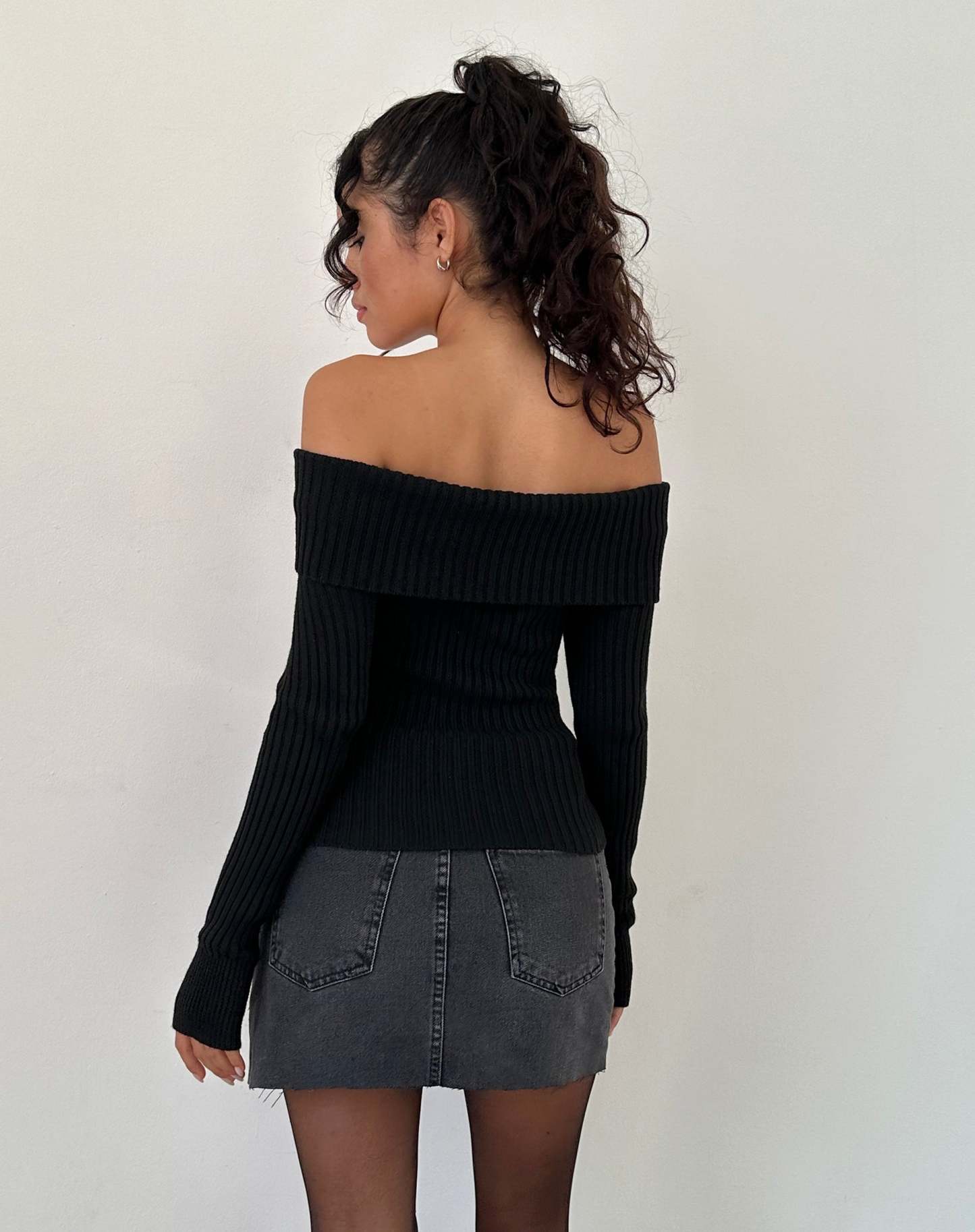 Circe Off-Shoulder Long Sleeve Knit Top in Black