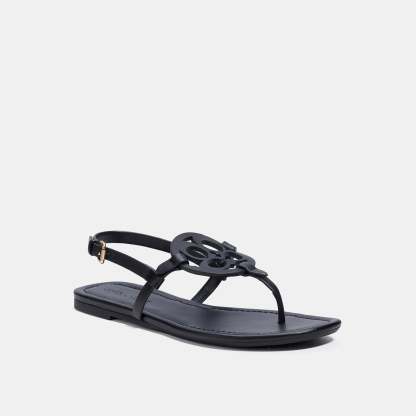 Leather upper Man-made leather lining and footbed Rubber outsole Buckle closure Style No. C2924 | Outlet Jaci Sandal - Black, Size - 7.5