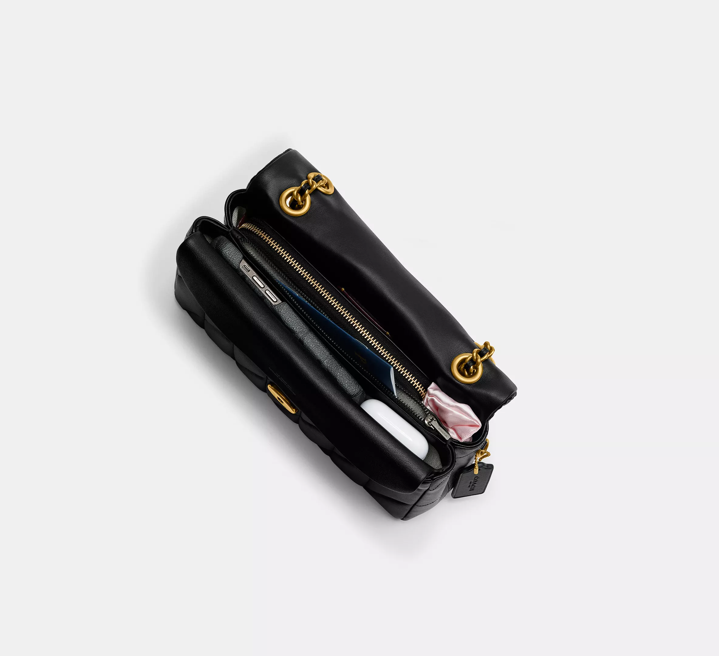 - Chain strap with 21.50" drop for shoulder or crossbody wear
