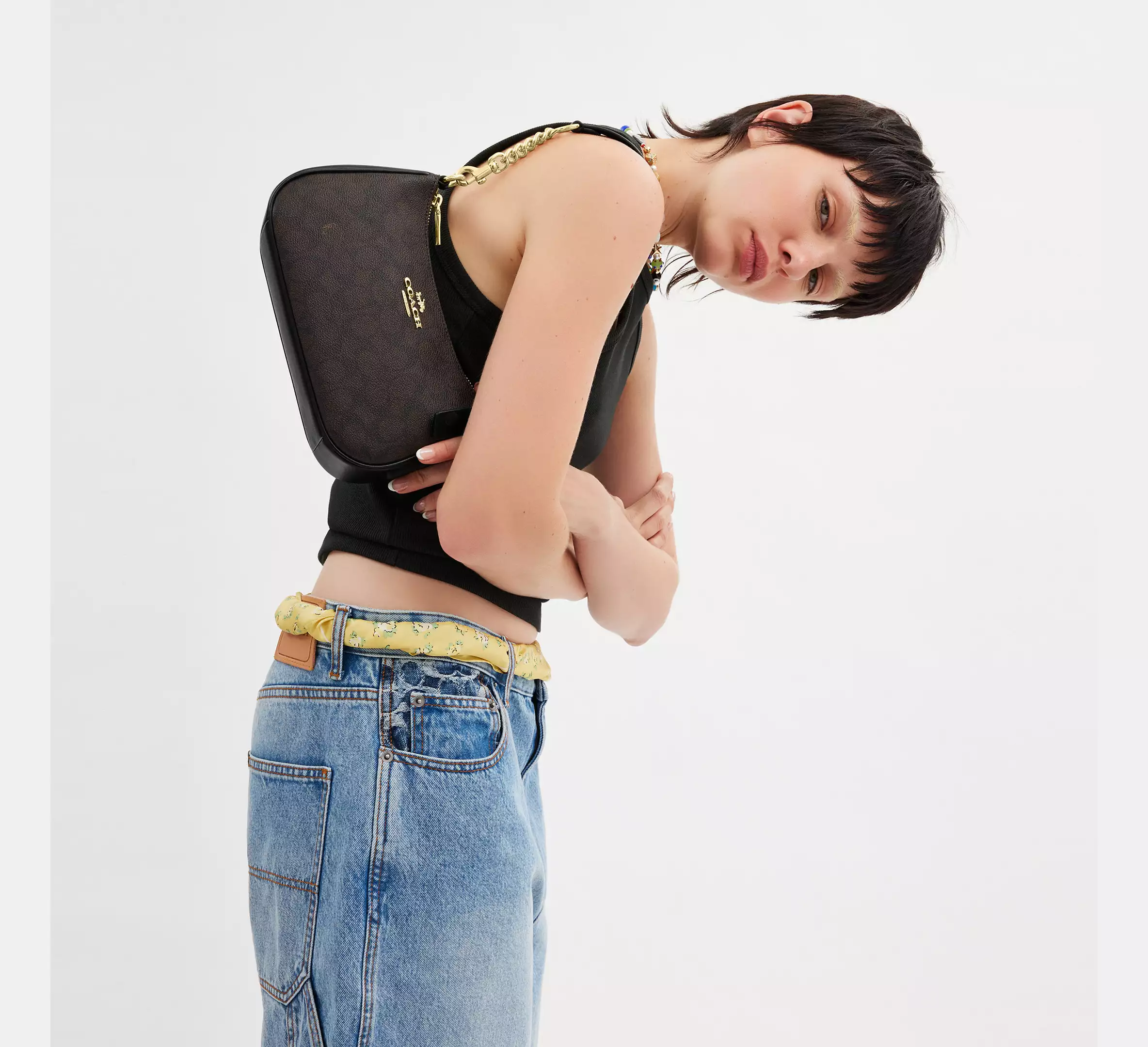 - Detachable strap with 22.75" drop for shoulder or crossbody wear