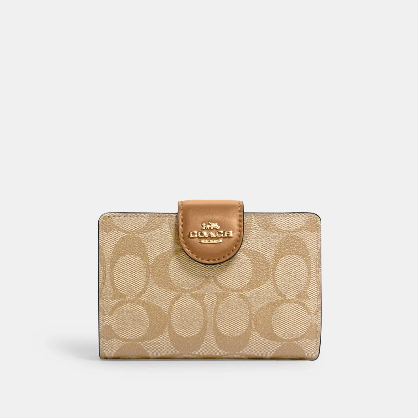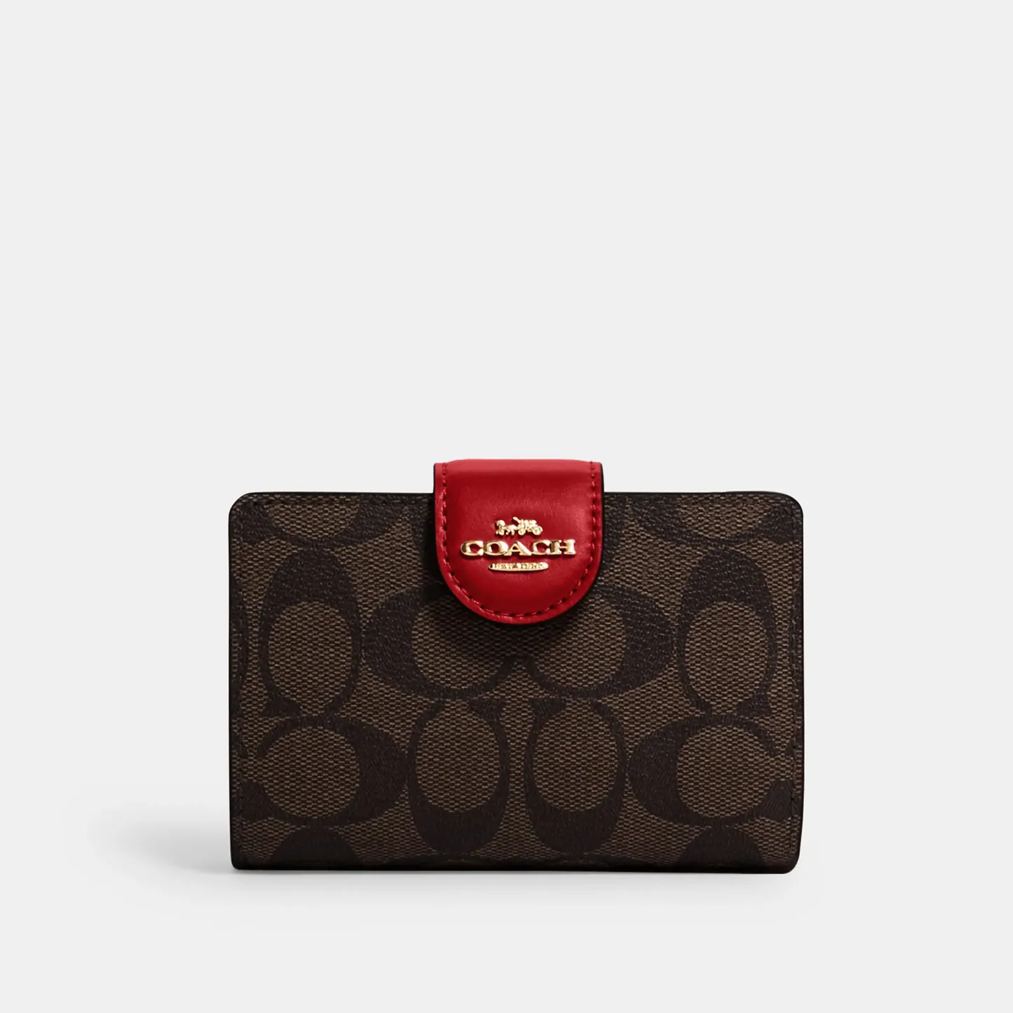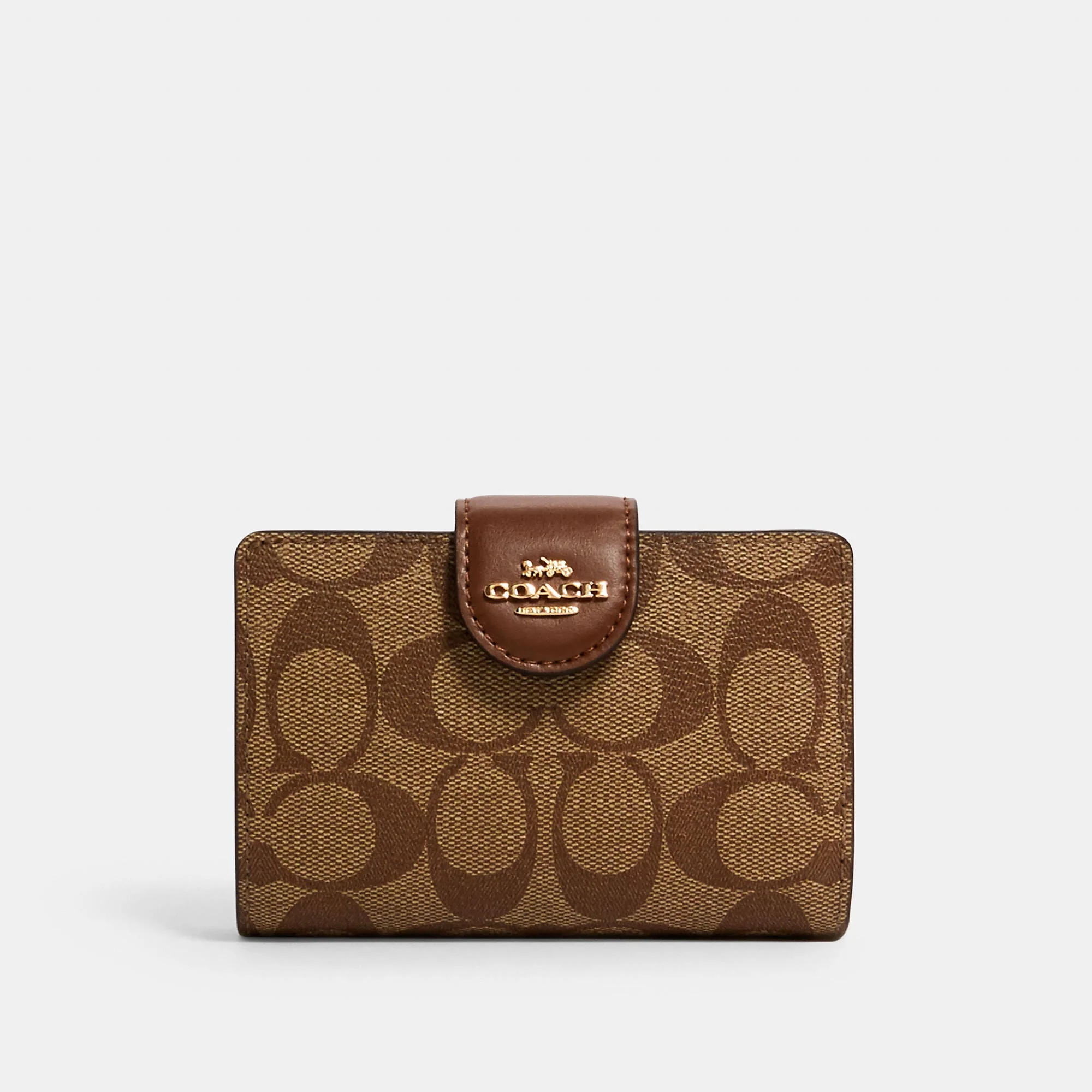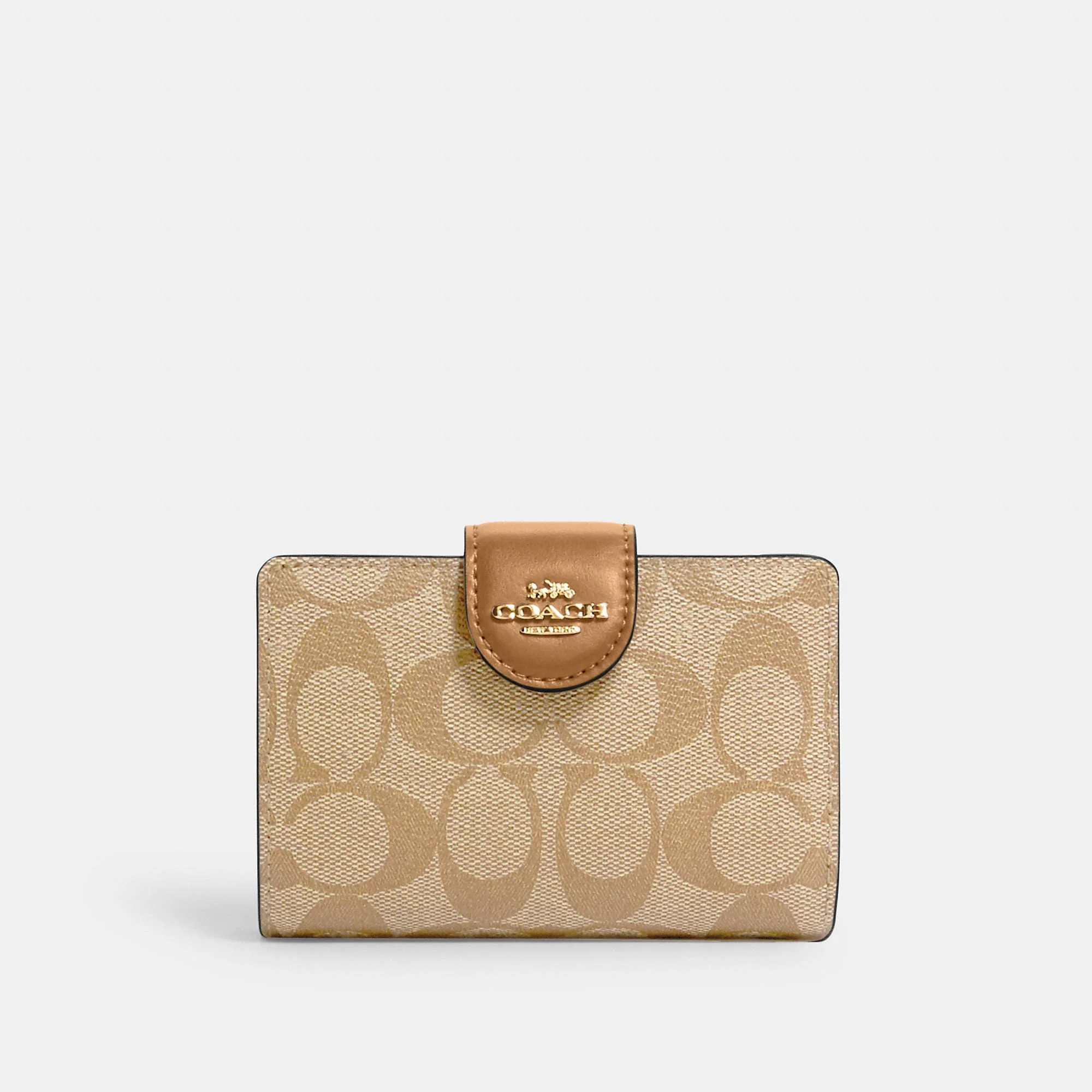 Signature coated canvas and smooth leather Seven credit card slots Bill compartment ID window Snap closure Zip coin pocket 5 (L) x 3 1/2 (H) x 1/2 (W) Style No. C0082
