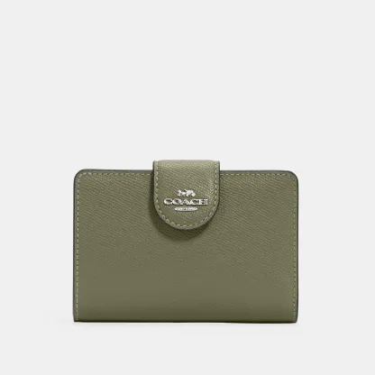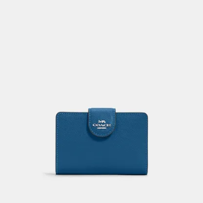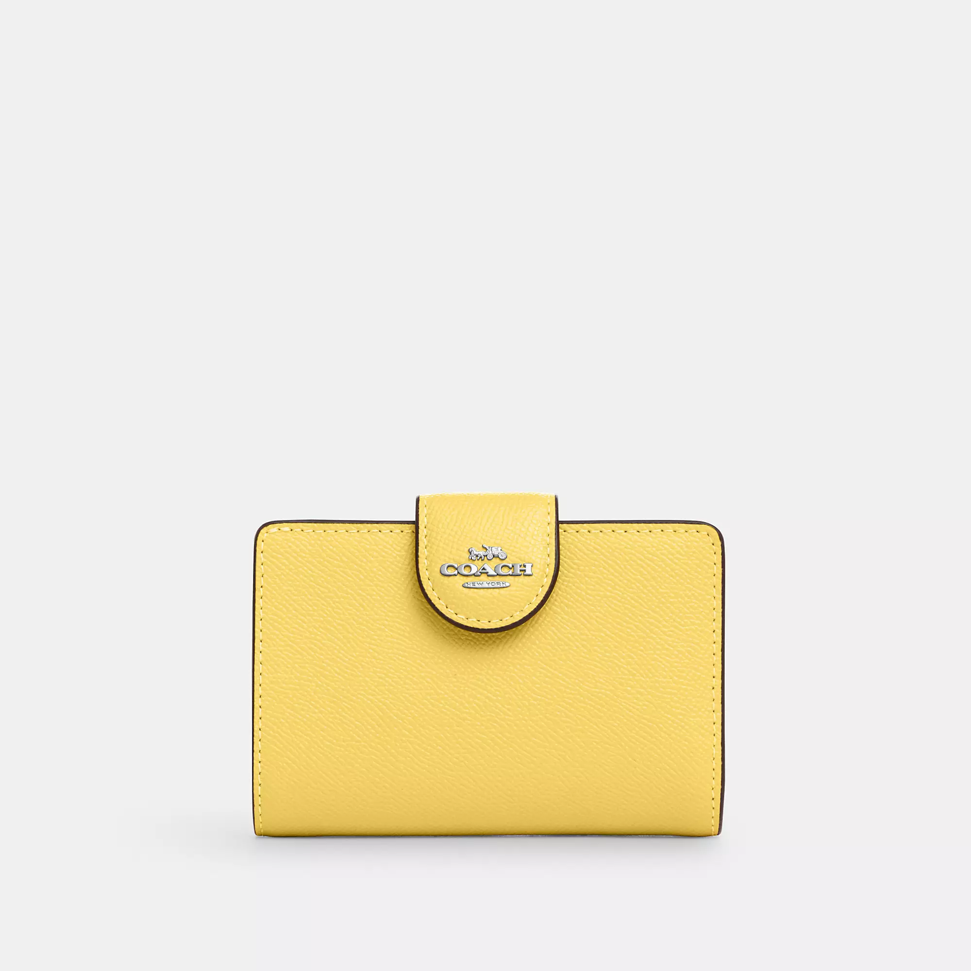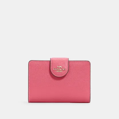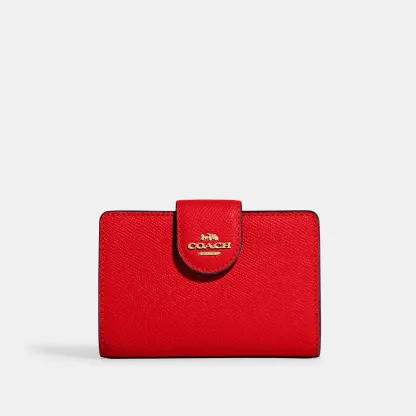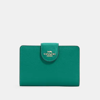 Crossgrain leather Seven credit card slots Bill compartment ID window Snap closure Zip coin pocket 5 (L) x 3 1/2 (H) x 1/2 (W) Style No. 6390 | Outlet Medium Corner Zip Wallet - Gold/Midnight
