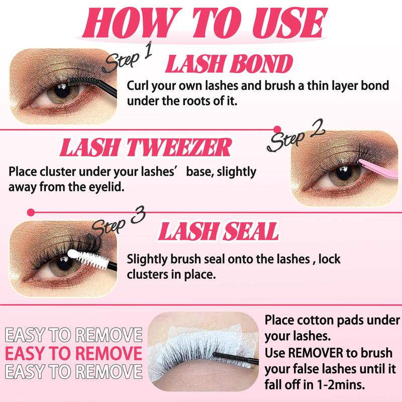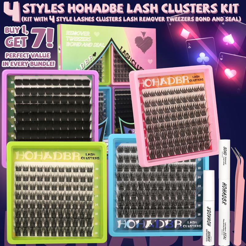 4 Styles Lash Clusters Kit, Volume/ Mega/ Full/ Ultra Eyelash Clusters Extensions with Everything You Need for Beginners and Proficient, at Home Easily