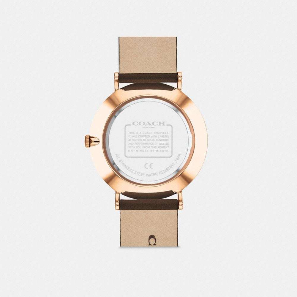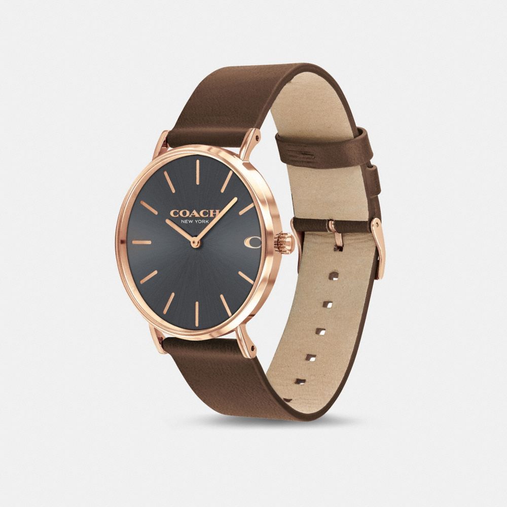 Rose gold tone case and mahogany leather strap