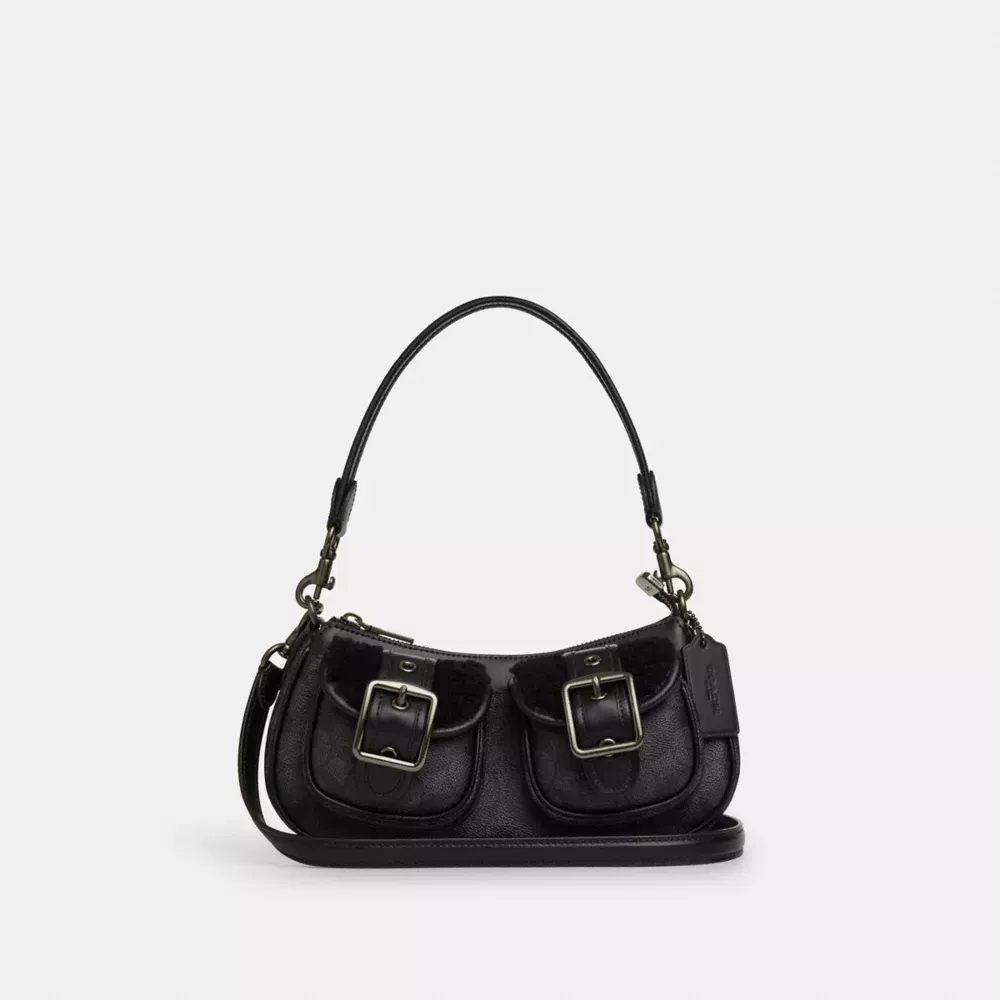 - Detachable strap with 23.25" drop for shoulder or crossbody wear