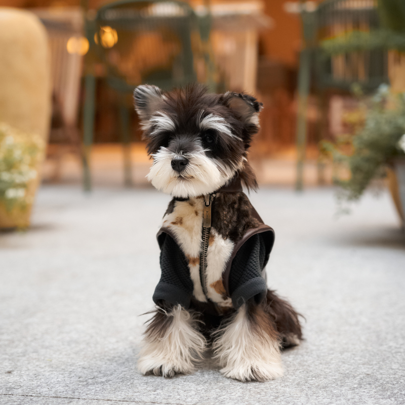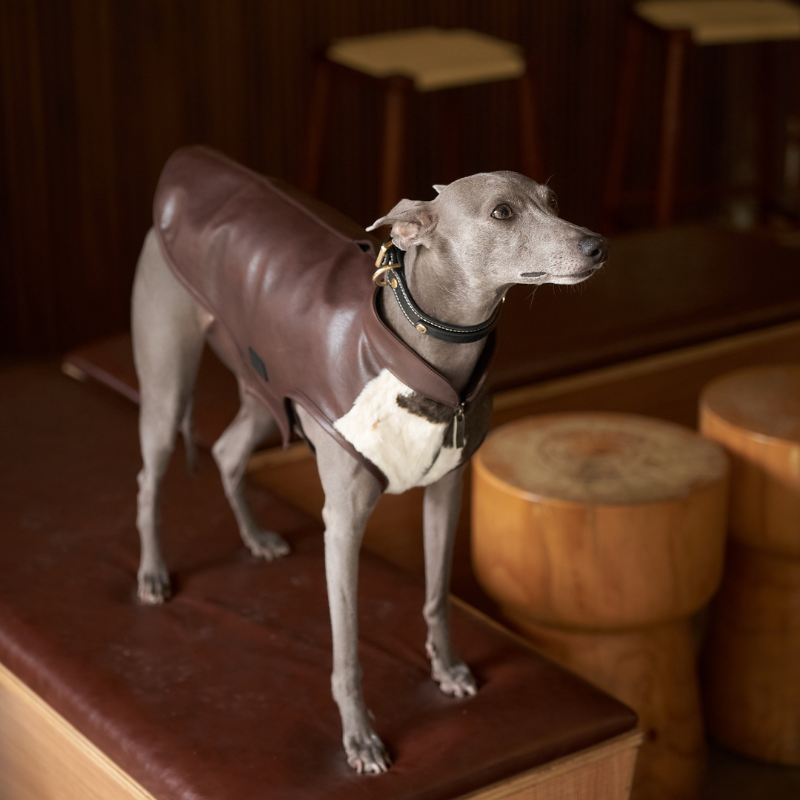 This bold BAXLEY Cowhide Leather Vest features a playful cowhide vegan fur front that instantly turns heads at the park and a richly hued burgundy vegan leather back for an unexpected, luxurious twist. More than just a showpiece, the Baxley’s thoughtfully crafted two-way closure system—combining a sturdy zipper down the center and flexible velcro around the chest—keeps your pup comfortable and secure, whether they're strutting down the sidewalk or lounging in the sun.