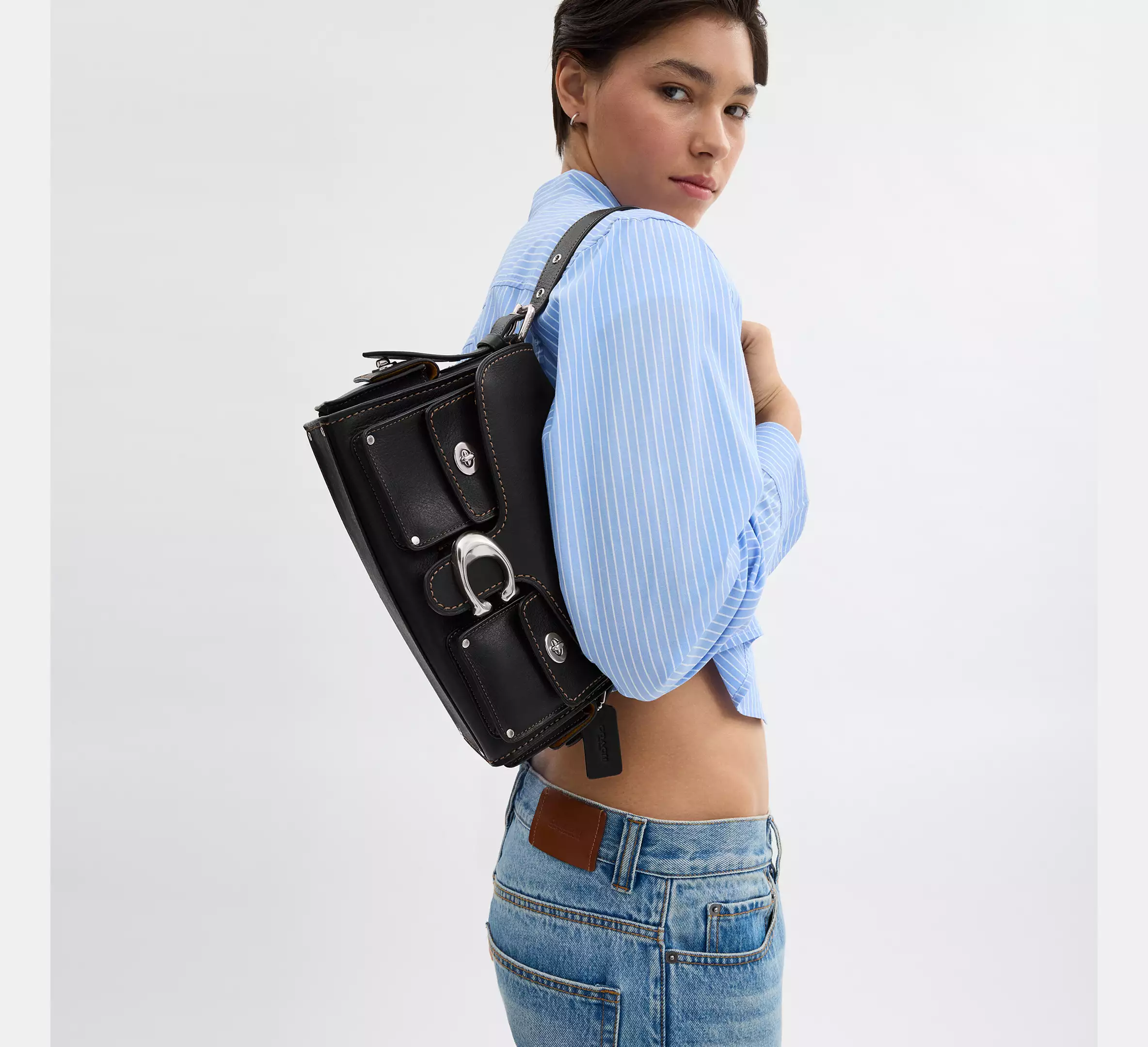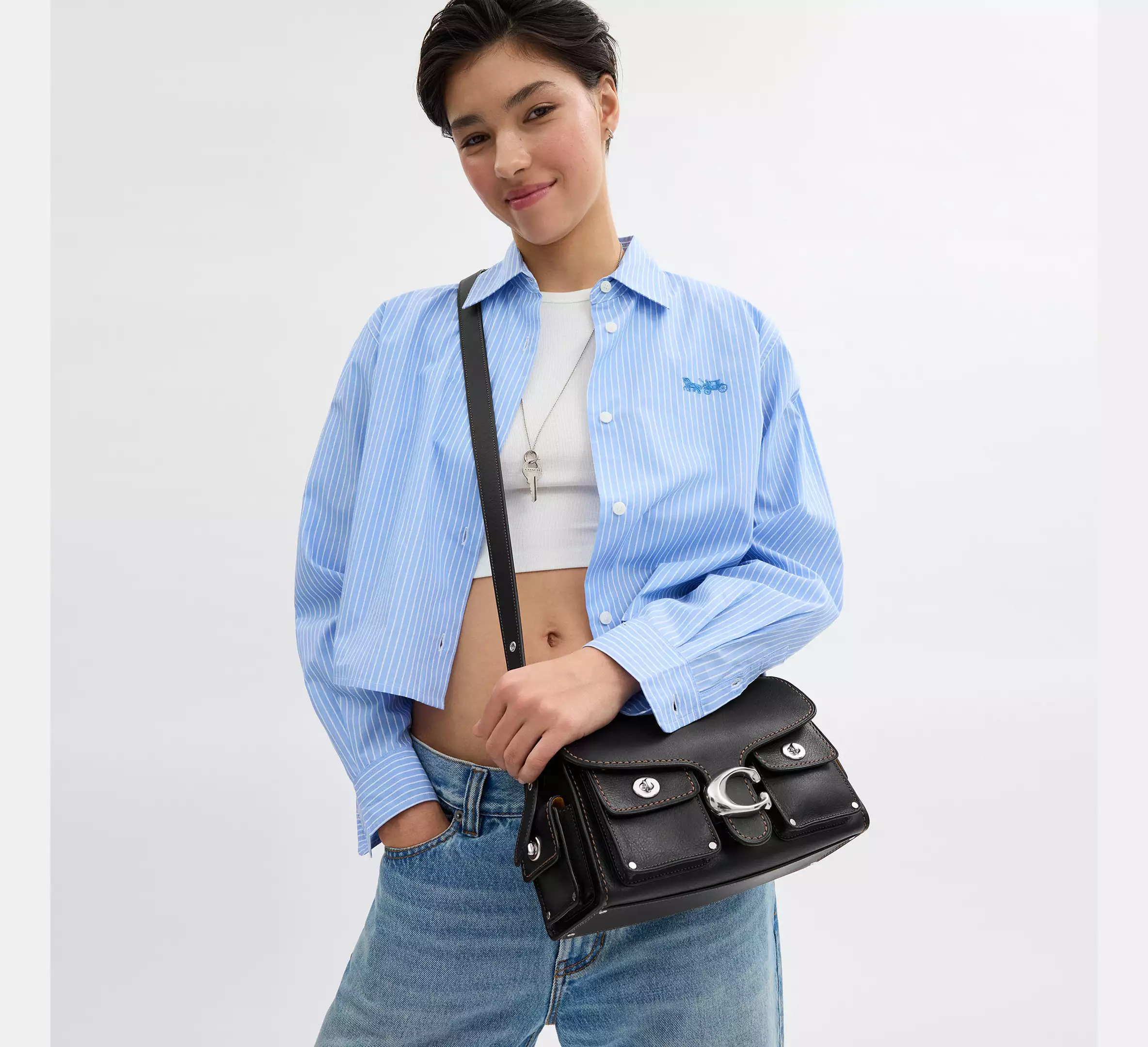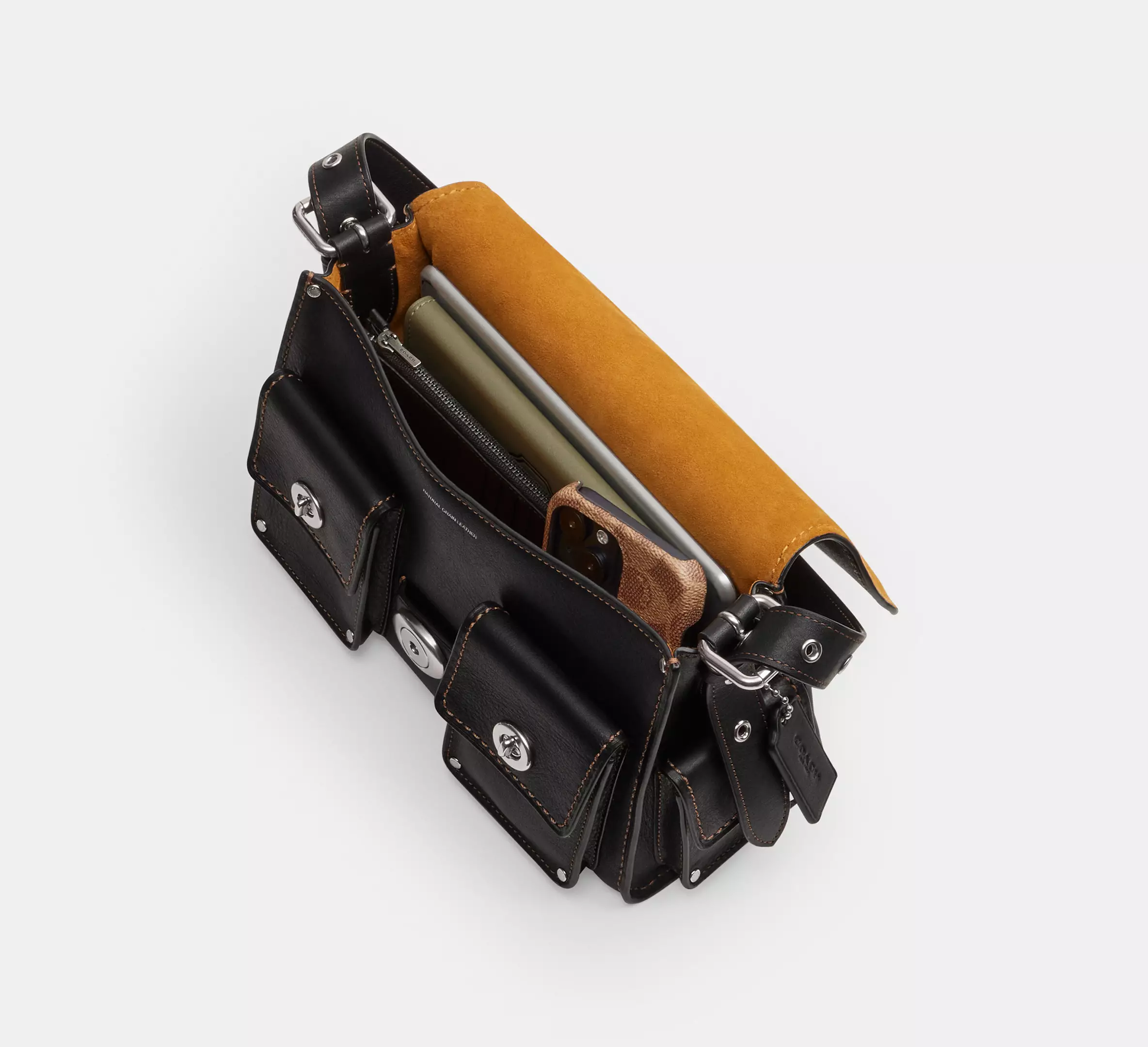 - Adjustable long strap with 21.5" drop for shoulder or crossbody wear