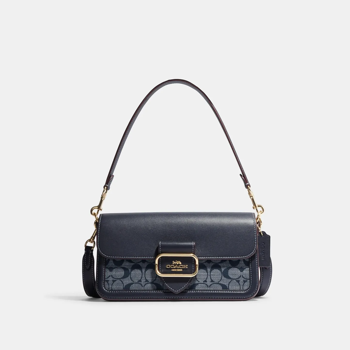 Signature chambray and smooth leather Inside zip and multifunction pockets Snap closure fabric lining Detachable handle with 9 drop Outside open pocket Detachable strap with 21 1/4 drop for shoulder or crossbody wear 10 1/2 (L) x 5 1/2 (H) x 2 1/2 (W) Style No. CH137 | Outlet Morgan Shoulder Bag In Signature Chambray - Blue