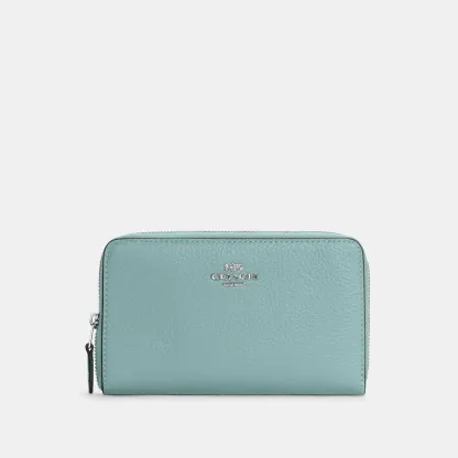 Refined pebble leather Nine credit card slots Bill compartments ID window Zip coin pocket Zip-around closure 6 1/2 (L) x 3 3/4 (H) x 3/4 (W) Style No. C4124