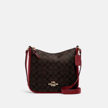 Signature coated canvas and refined pebble leather Inside multifunction pocket Zip-top closure fabric lining Outside zip pocket Adjustable strap with 21 drop for shoulder or crossbody wear 10 1/4 (L) x 9 1/2 (H) x 2 3/4 (W) Style No. C1649