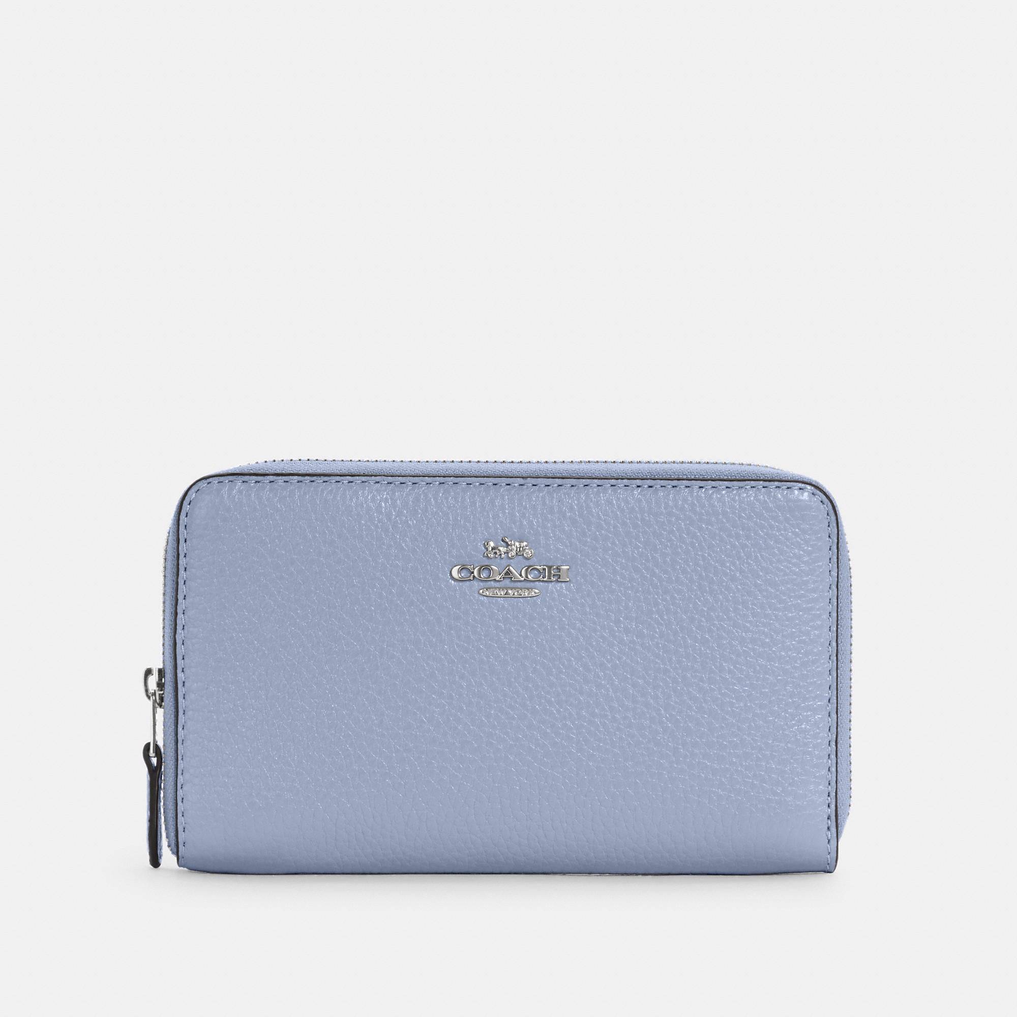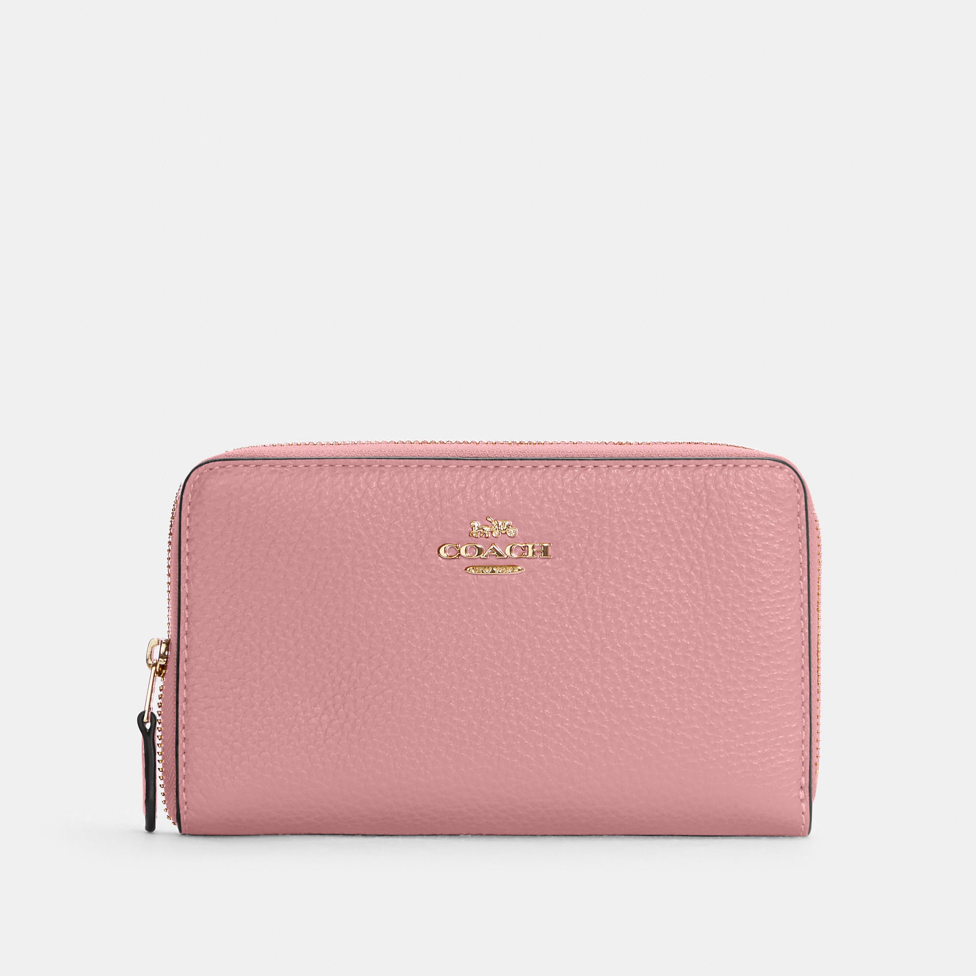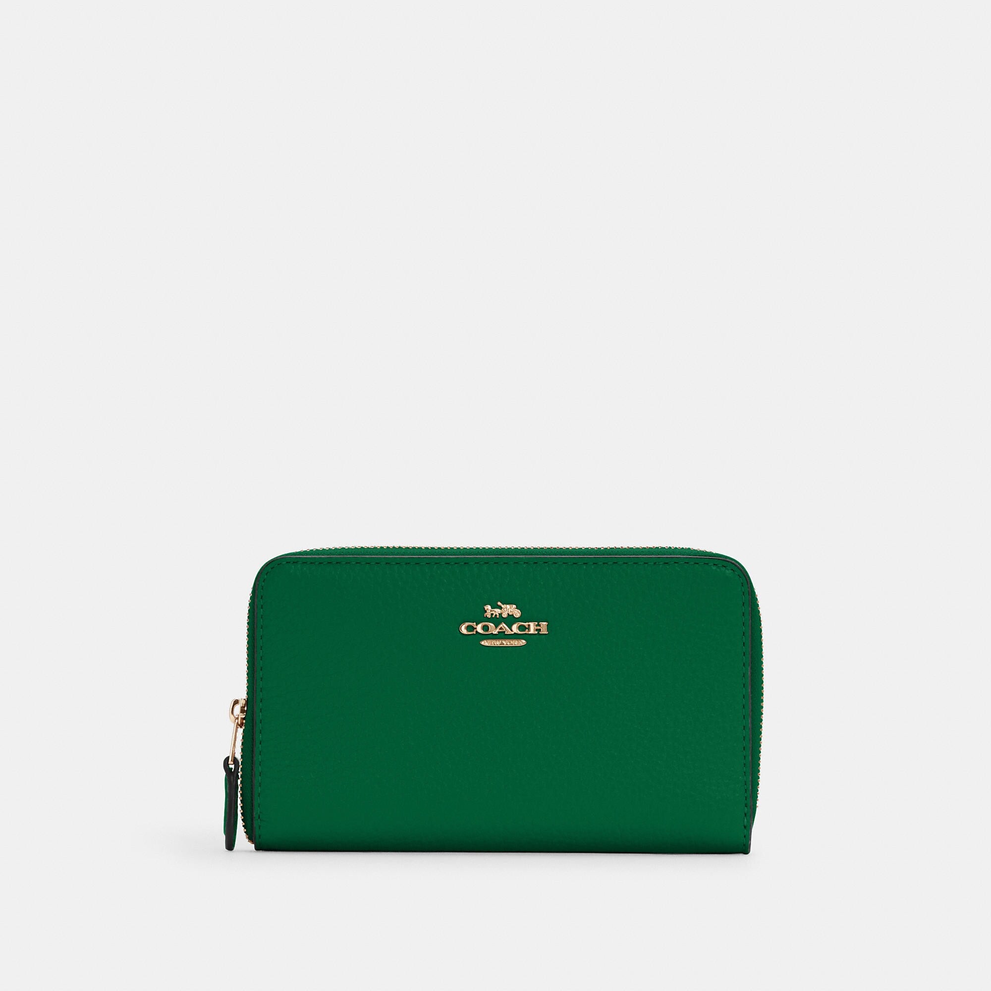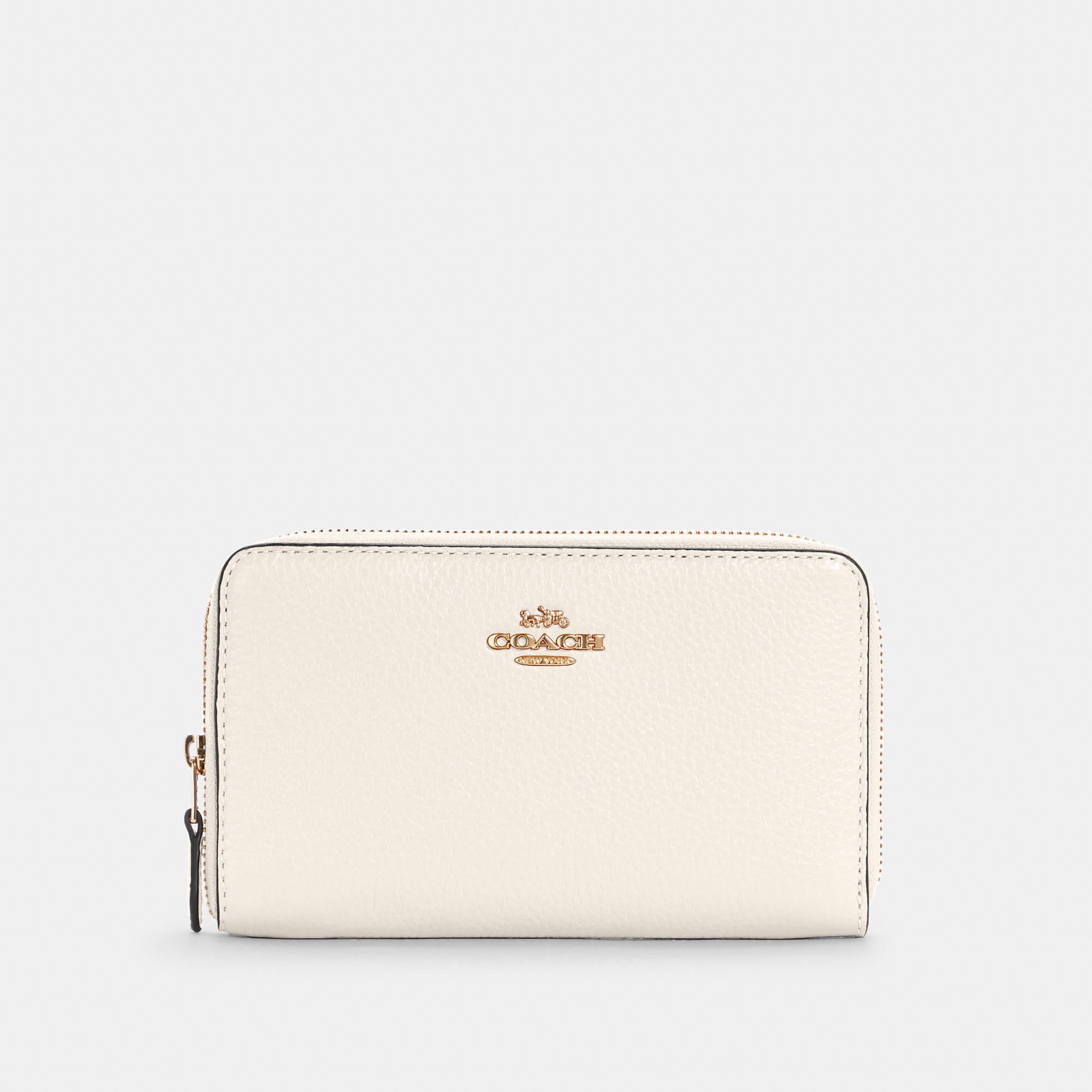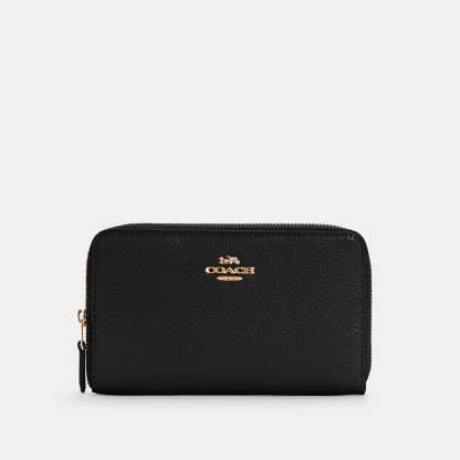 Refined pebble leather Nine credit card slots Bill compartments ID window Zip coin pocket Zip-around closure 6 1/2 (L) x 3 3/4 (H) x 3/4 (W) Style No. C4124