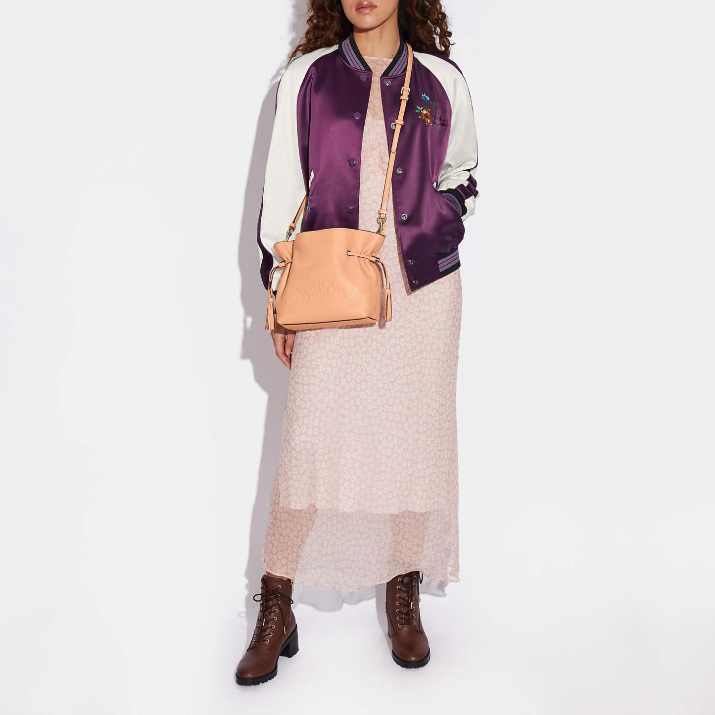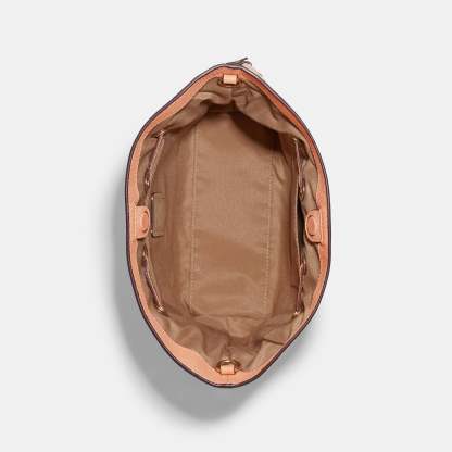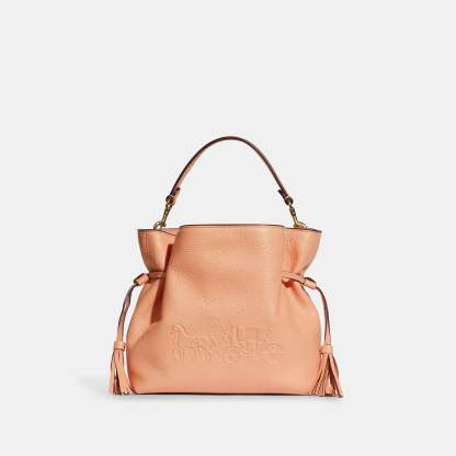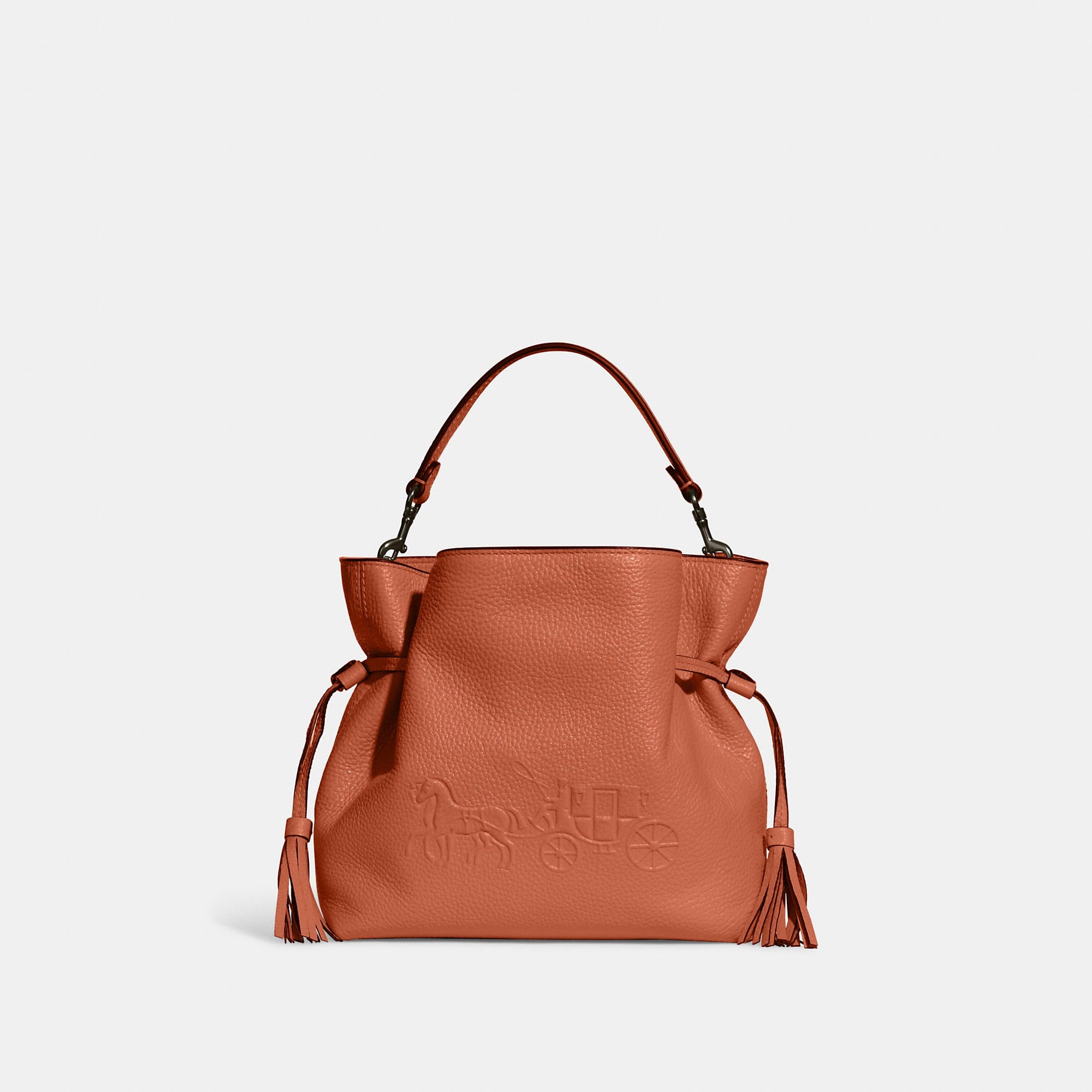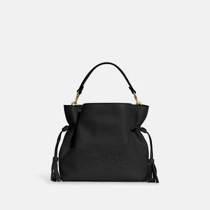 Refined pebble leather Inside zip and multifunction pockets Drawstring and magnetic snap closures fabric lining Detachable handle with 5 1/4 drop Detachable strap with 21 drop for shoulder or crossbody wear 9 1/2 (L) x 7 3/4 (H) x 3 3/4 (W) Style No. CA213