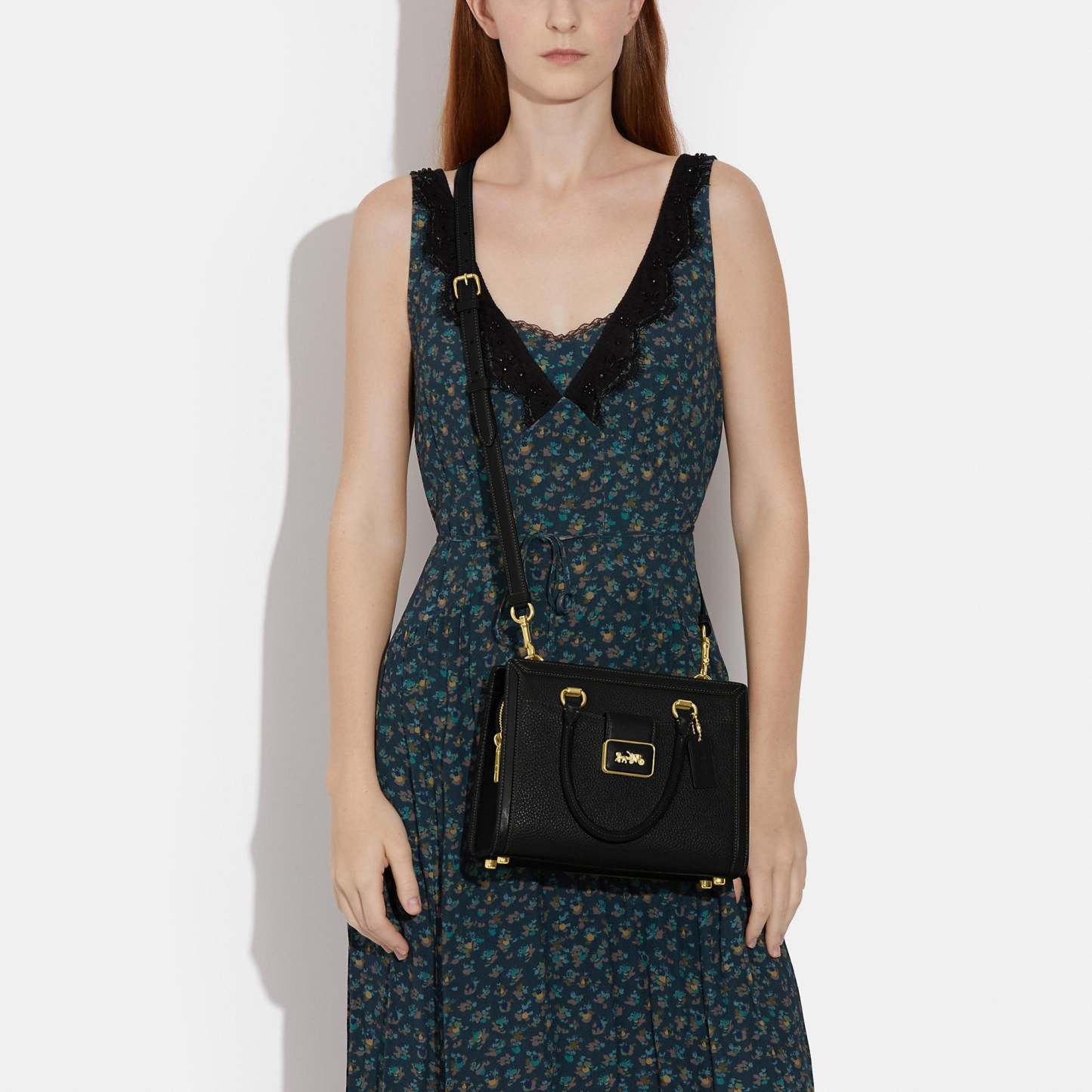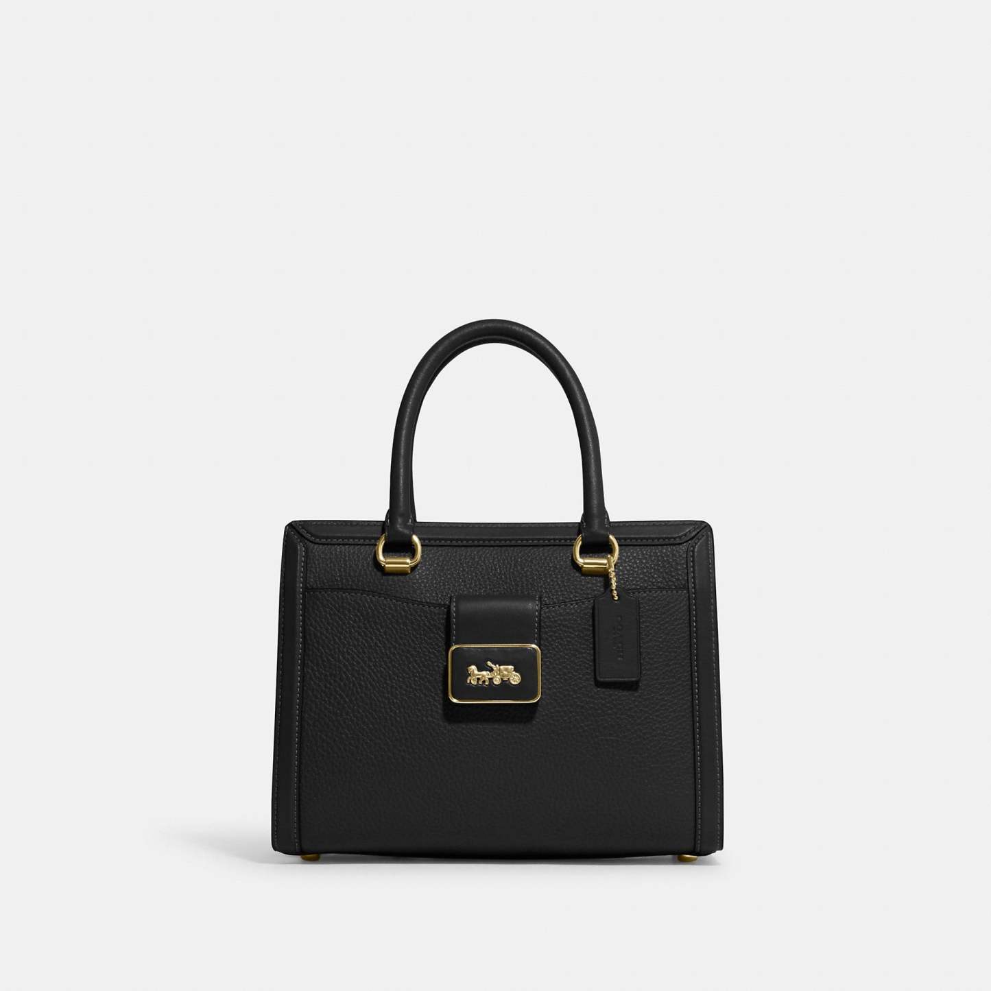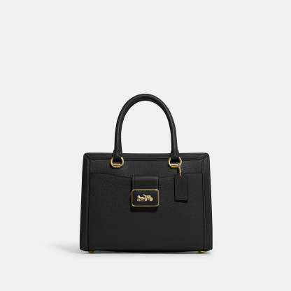 Refined pebble leather and smooth leather Inside multifunction pocket Zip closure fabric lining Handles with 4 drop Outside slip pocket with magnetic closure Detachable strap with 21 3/4 drop for shoulder or crossbody wear Four protective feet at base 9 1/4 (L) x 7 (H) x 4 1/2 (W) Style No. CC141 | Outlet Grace Carryall - Black