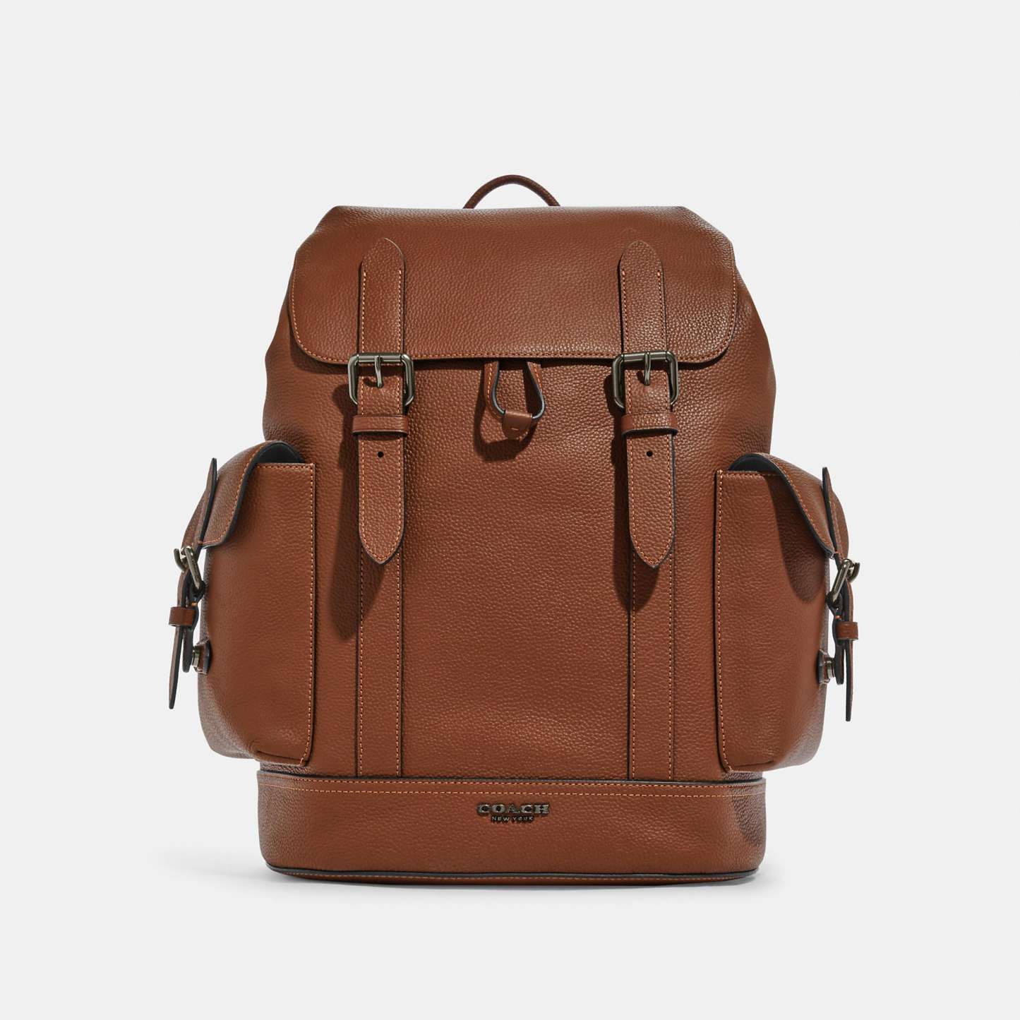 Natural pebble leather Inside zip cell phone and multifunction pockets Inside tech sleeve Flap and drawstring closures fabric lining Top handle with 3 drop Outside flap pockets Adjustable shoulder straps 11 3/4 (L) x 16 1/2 (H) x 6 (W) Style No. CB837 | Outlet Hudson Backpack - Black