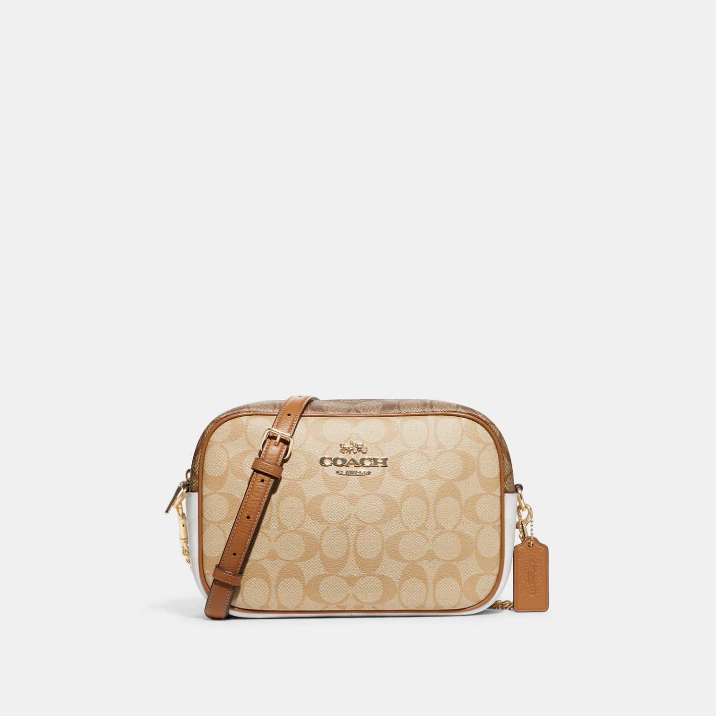 Signature coated canvas and refined pebble leather Inside multifunction pocket Zip closure fabric lining Outside open pocket Detachable strap with 21 3/4 drop for shoulder or crossbody wear 9 1/2 (L) x 6 1/4 (H) x 2 3/4 (W) Style No. CA172 | Outlet Jamie Camera Bag In Blocked Signature Canvas - Beige