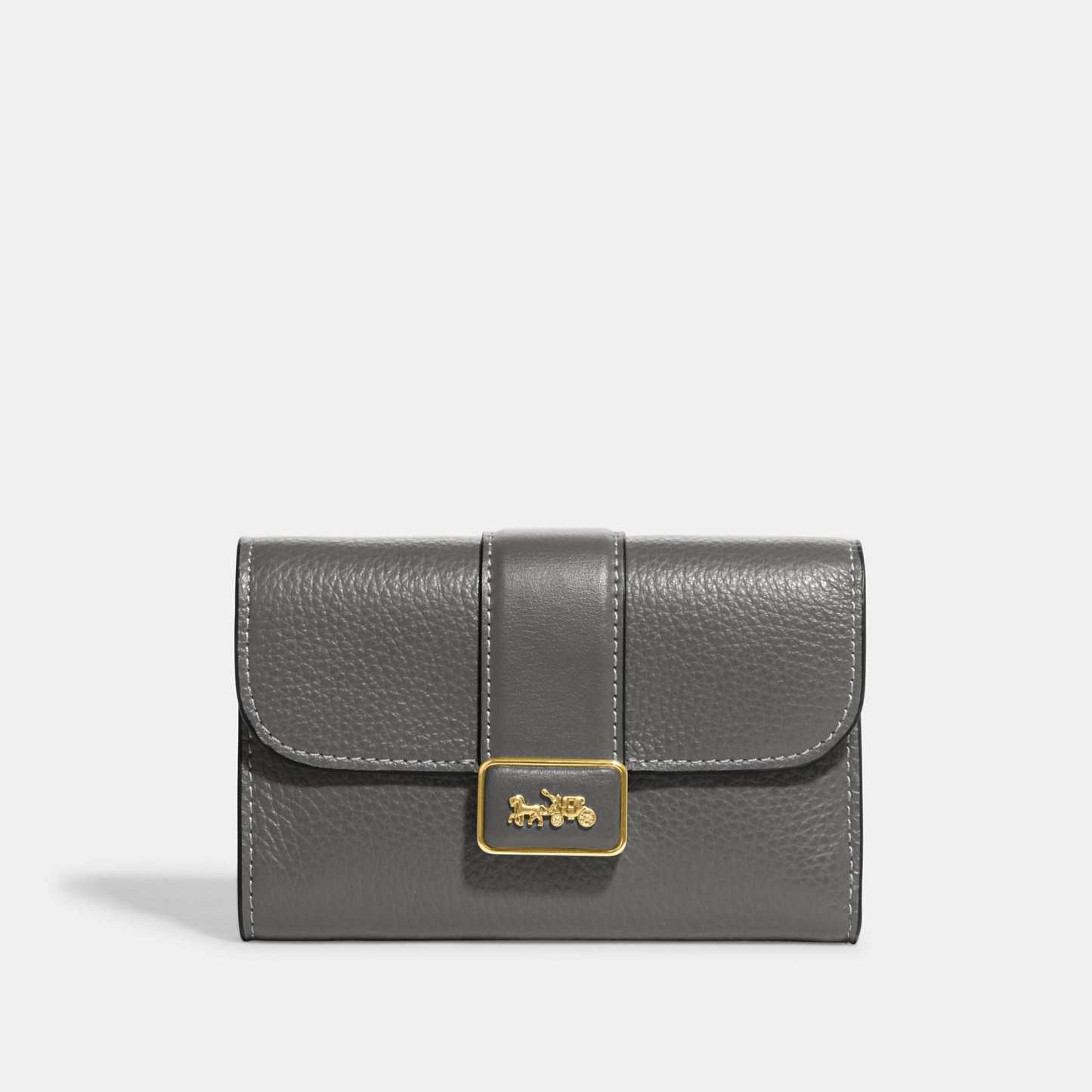 Refined pebble leather and smooth leather Six credit card slots ID window Full-length bill compartment Inside zip coin pocket Snap closure Outside open pocket 5 1/4 (L) x 3 3/4 (H) x 3/4 (W) Style No. CC059 | Outlet Medium Grace Wallet - Grey