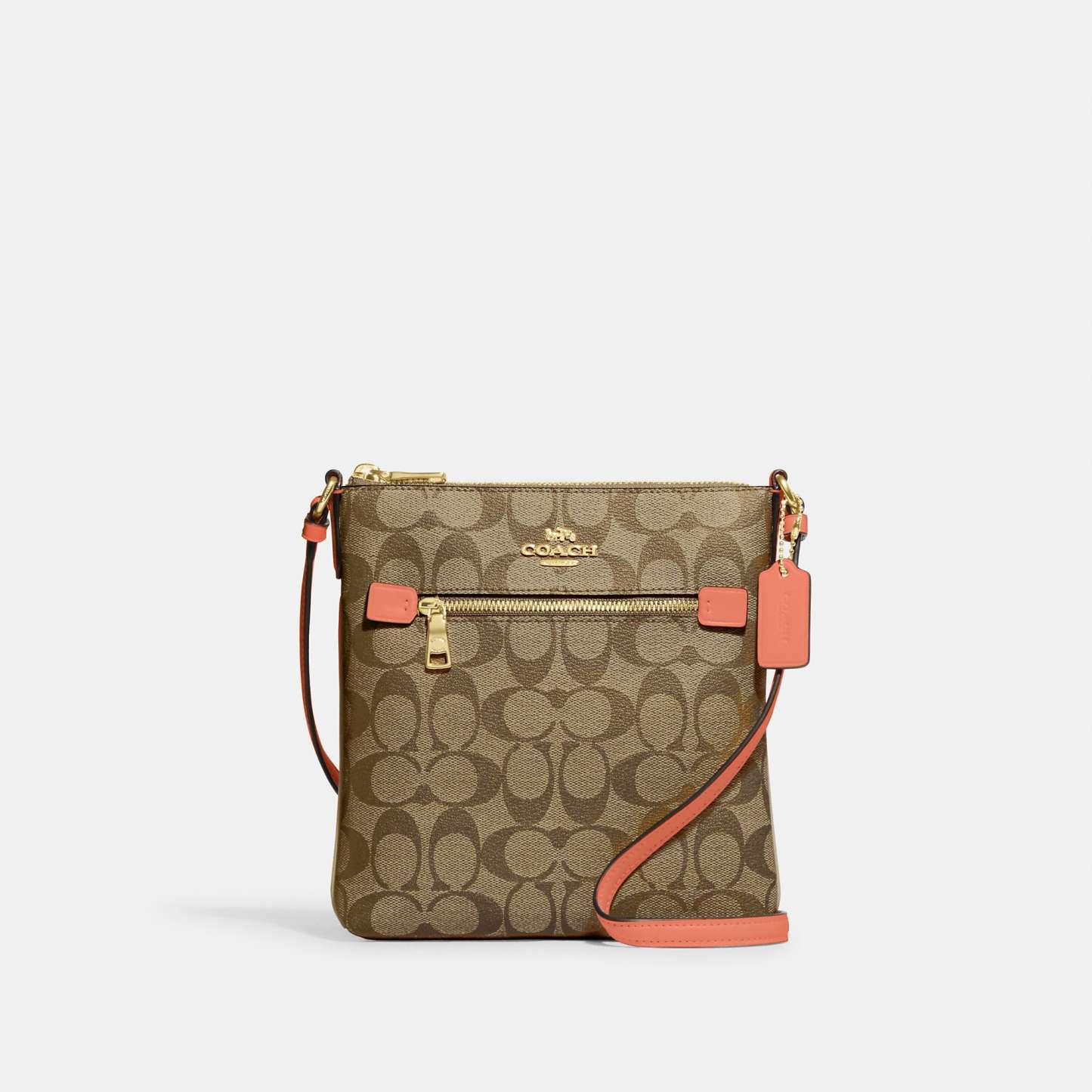Signature coated canvas and smooth leather Inside multifunction pocket Zip-top closure fabric lining Outside zip pocket Adjustable strap with 22 drop for shoulder or crossbody wear 8 1/4 (L) x 8 1/4 (H) x 1 1/4 (W) Style No. CF340 | Outlet Mini Rowan File Bag In Signature Canvas - Multi