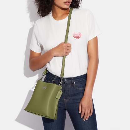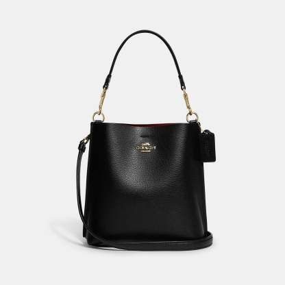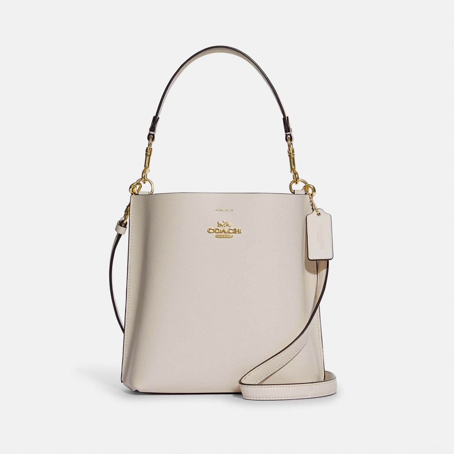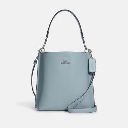 Double face leather Center zip compartment Snap closure Detachable handle with 6 3/4 drop Detachable strap with 22 drop for shoulder or crossbody wear 8 (L) x 8 1/2 (H) x 4 (W) Style No. CA177