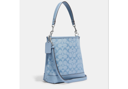 Signature chambray and smooth leather Center zip compartment Snap closure Detachable handle with 6 3/4 drop Detachable strap with 22 drop for shoulder or crossbody wear 8 (L) x 8 1/2 (H) x 4 (W) Style No. CH230 | Outlet Mollie Bucket Bag 22 In Signature Chambray - Multi