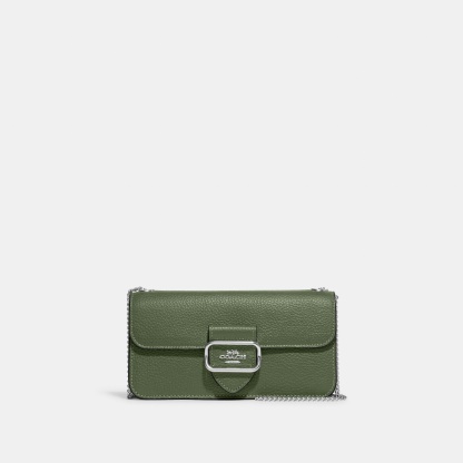 Refined pebble leather Inside multifunction pocket Snap closure fabric lining Outside open pocket Detachable strap with 23 3/4 drop for shoulder or crossbody wear 7 3/4 (L) x 4 1/4 (H) x 1 3/4 (W) Style No. CF488 | Outlet Morgan Crossbody - Green