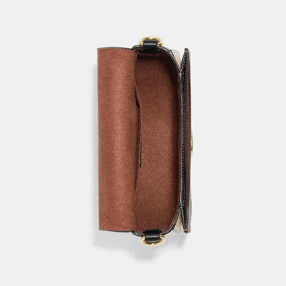 Signature coated canvas refined pebble leather and smooth leather Inside multifunction pockets Snap closure fabric lining Outside open pocket Detachable strap with 22 drop for shoulder or crossbody wear 7 3/4 (L) x 6 3/4 (H) x 2 3/4 (W) Style No. CE565 | Outlet Morgan Saddle Bag In Colorblock Signature Canvas - Beige