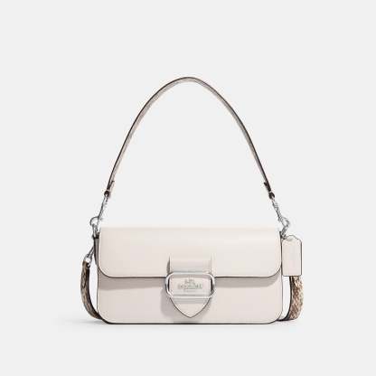Refined pebble leather and snake-embossed leather Inside zip and multifunction pockets Snap closure fabric lining Detachable handle with 9 drop Outside open pocket Detachable strap with 21 1/4 drop for shoulder or crossbody wear 10 1/2 (L) x 5 1/2 (H) x 2 1/2 (W) Style No. CE561 | Outlet Morgan Shoulder Bag - White