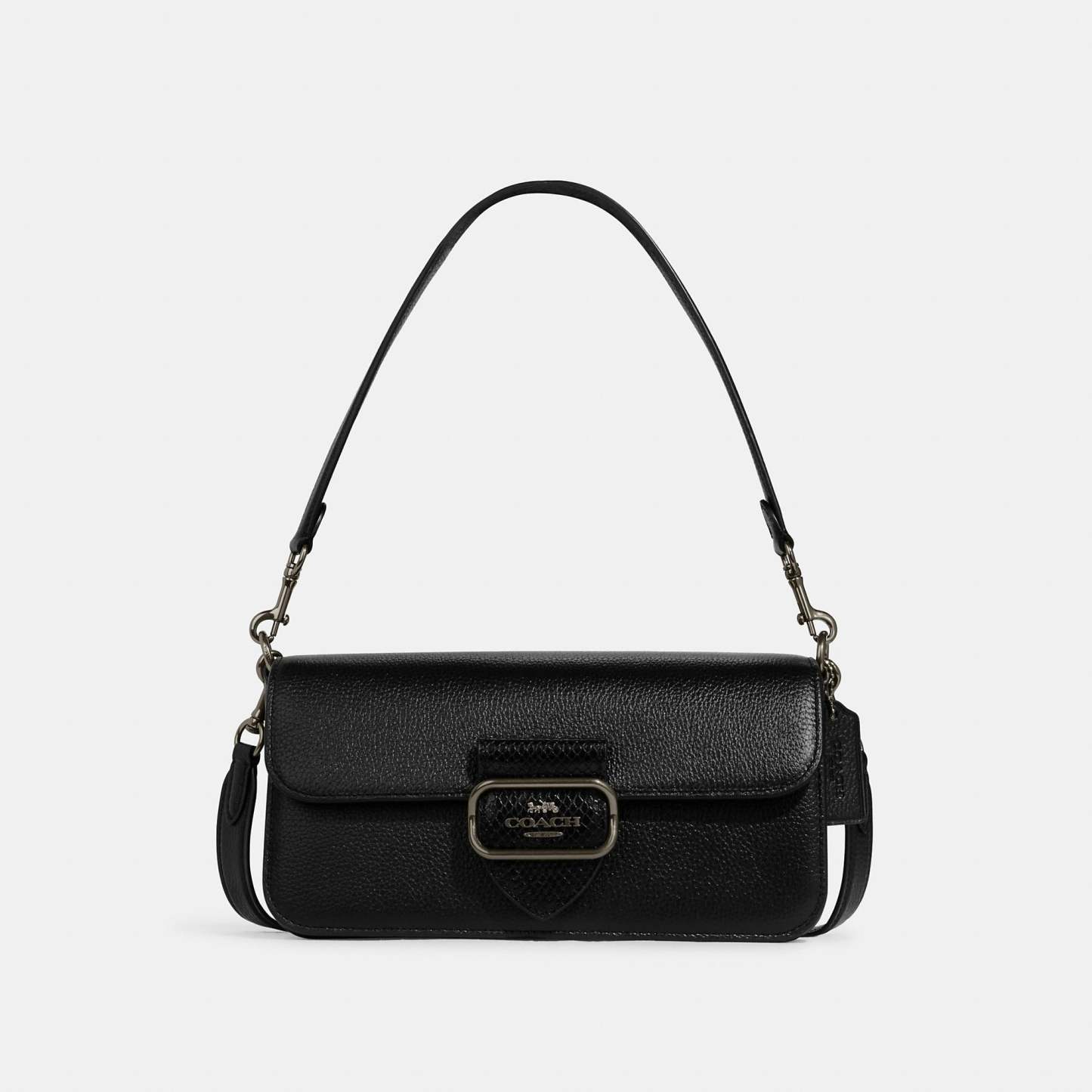 Refined pebble leather and snake-embossed leather Inside zip and multifunction pockets Snap closure fabric lining Detachable handle with 9 drop Outside open pocket Detachable strap with 21 1/4 drop for shoulder or crossbody wear 10 1/2 (L) x 5 1/2 (H) x 2 1/2 (W) Style No. CE562 | Outlet Morgan Shoulder Bag - Black