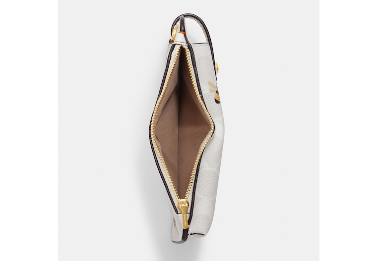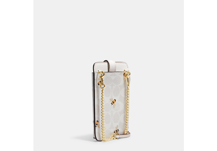 Signature coated canvas and smooth leather Snap phone pocket Zip coin pocket Outside slip pocket Detachable strap with 23 drop for shoulder or crossbody wear 4 (L) x 7 (H) x 3/4 (W) Style No. C8672 | Outlet Phone Crossbody In Signature Canvas With Bee Print - White