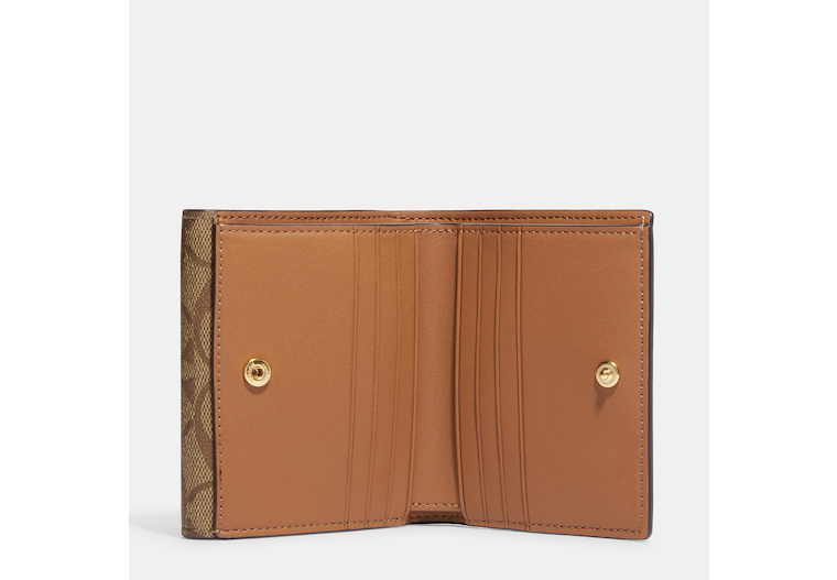 Signature coated canvas and smooth leather Six credit card slots Full-length bill compartment Snap closure Outside snap coin pocket 4 1/4 (L) x 3 3/4 (H) Style No. CH387 | Outlet Small Morgan Wallet In Blocked Signature Canvas - Multi