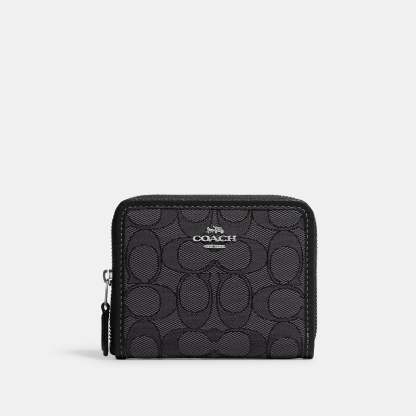 Signature jacquard and refined pebble leather Two credit card slots ID window Bill compartment Inside zip coin pocket Zip-around closure Outside zip coin pocket 4 1/2 (L) x 3 3/4 (H) x 3/4 (W) Style No. CH389 | Outlet Small Zip Around Wallet In Signature Jacquard - Brown