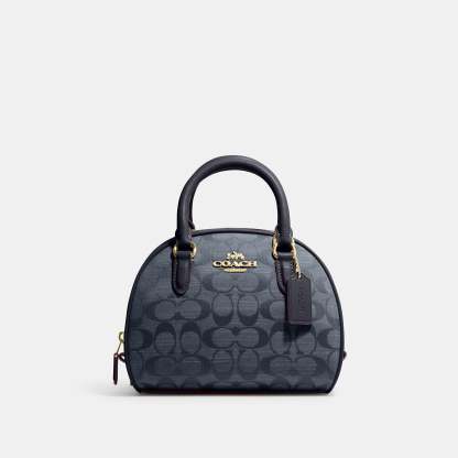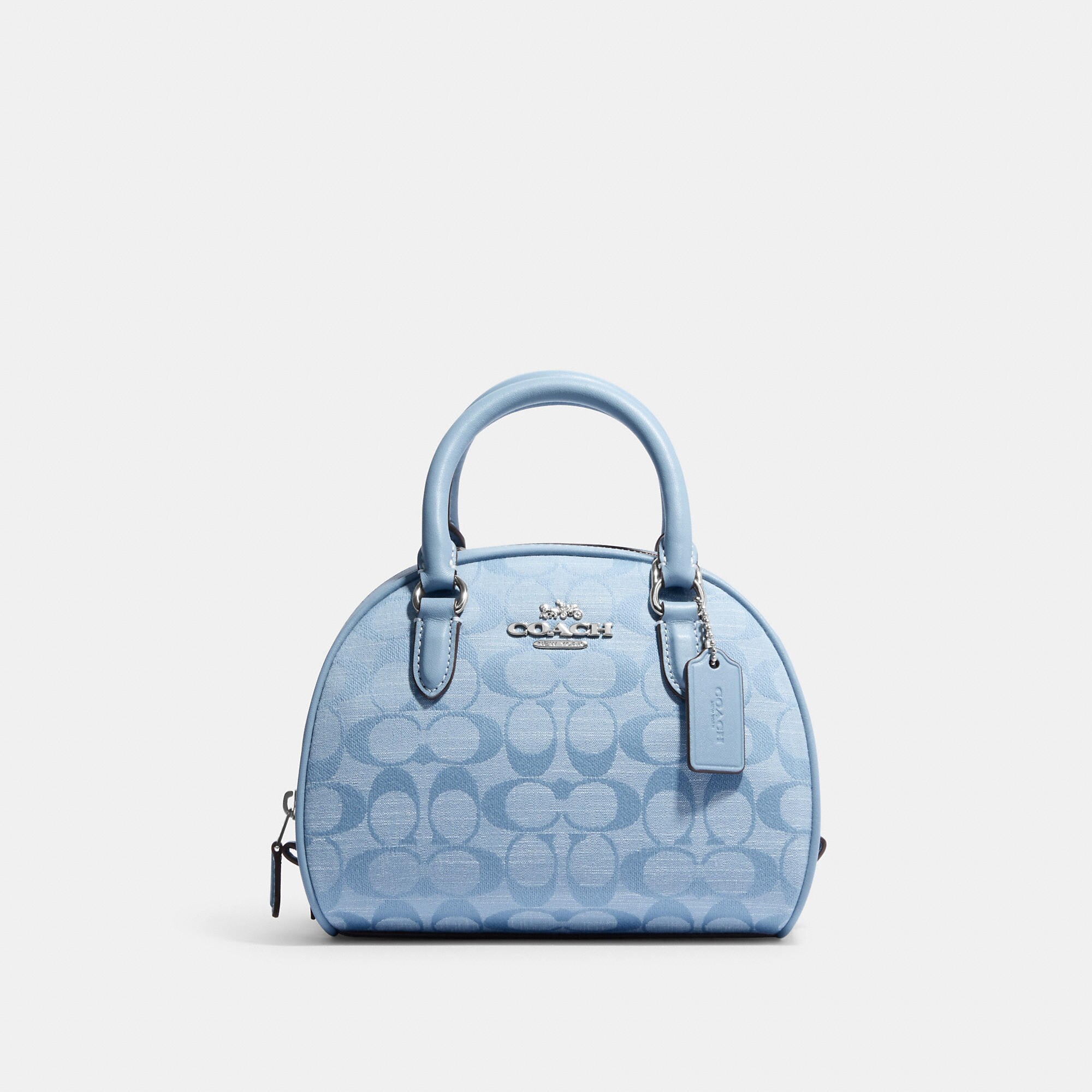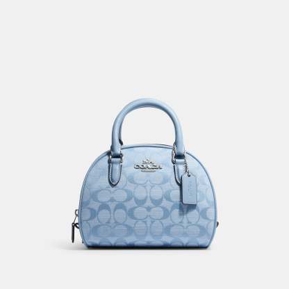 Signature chambray and smooth leather Inside multifunction pocket Zip closure fabric lining Handles with 2 3/4 drop Detachable strap with 22 1/2 drop for shoulder or crossbody wear 8 (L) x 6 (H) x 5 (W) Style No. CH140 | Outlet Sydney Satchel In Signature Chambray - Blue