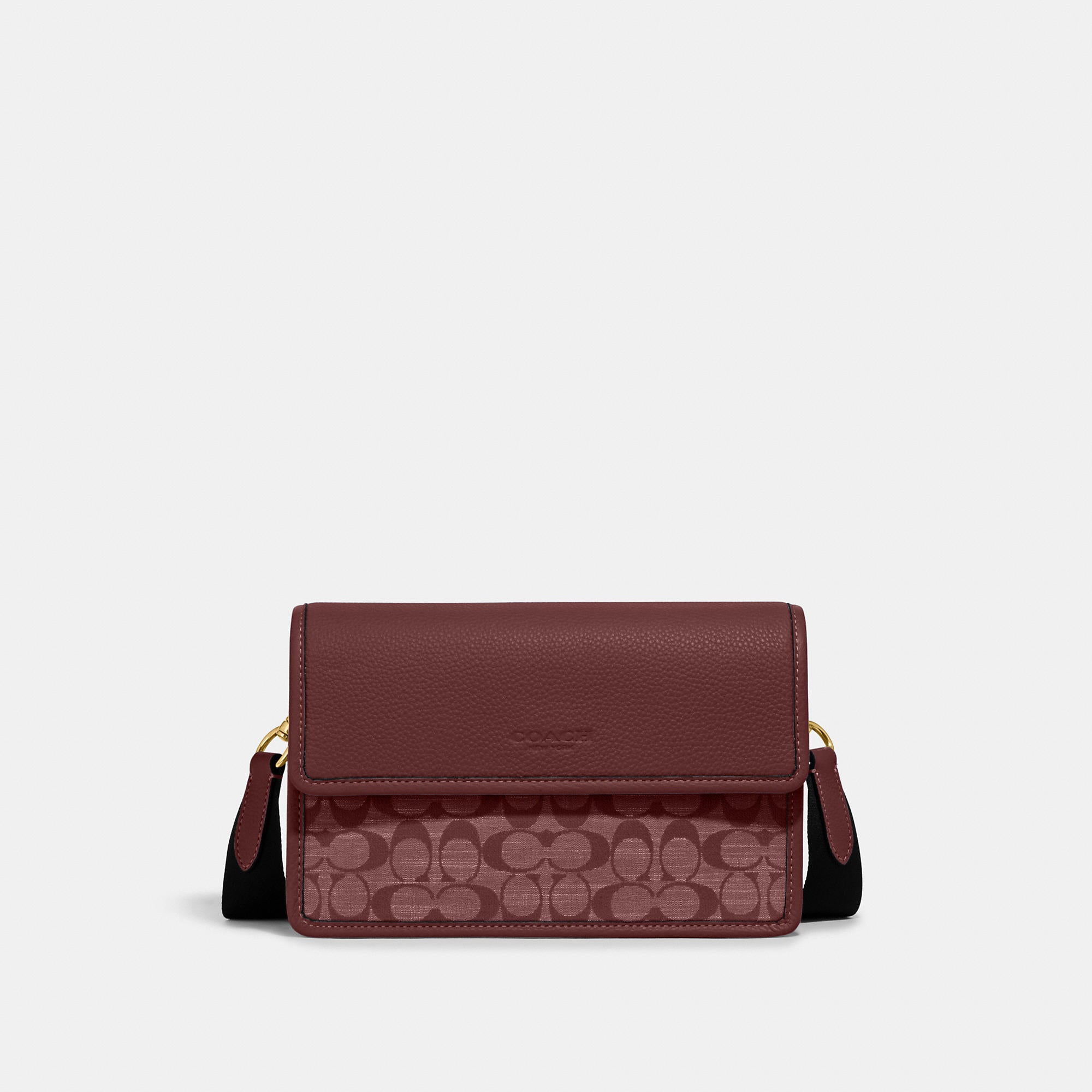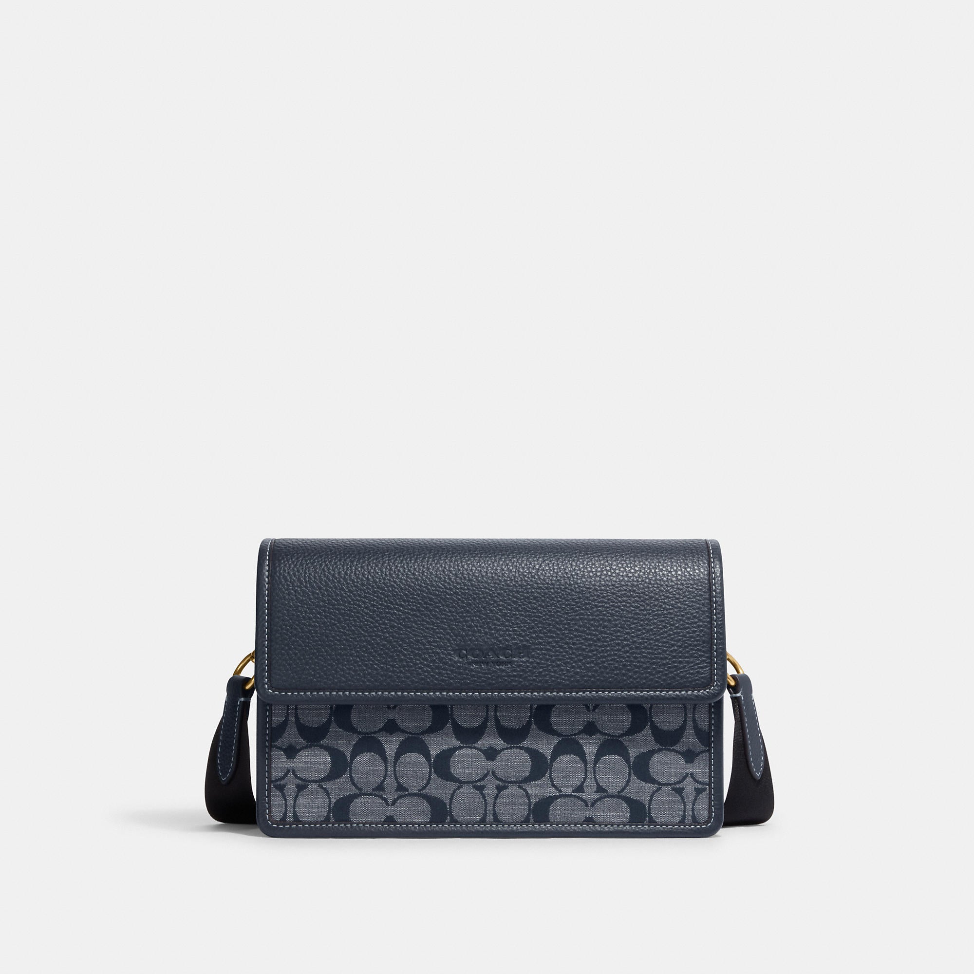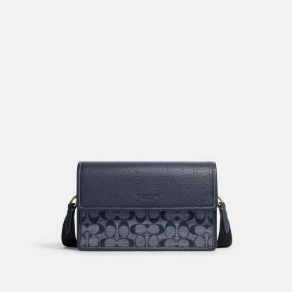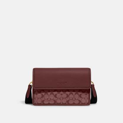Signature chambray and refined pebble leather Inside zip pocket Snap closure leather lining Outside slip pocket Detachable strap with 25 drop for shoulder or crossbody wear 9 3/4 (L) x 6 1/2 (H) x 2 (W) Style No. CH828 | Outlet Turner Flap Crossbody In Signature Chambray - Red