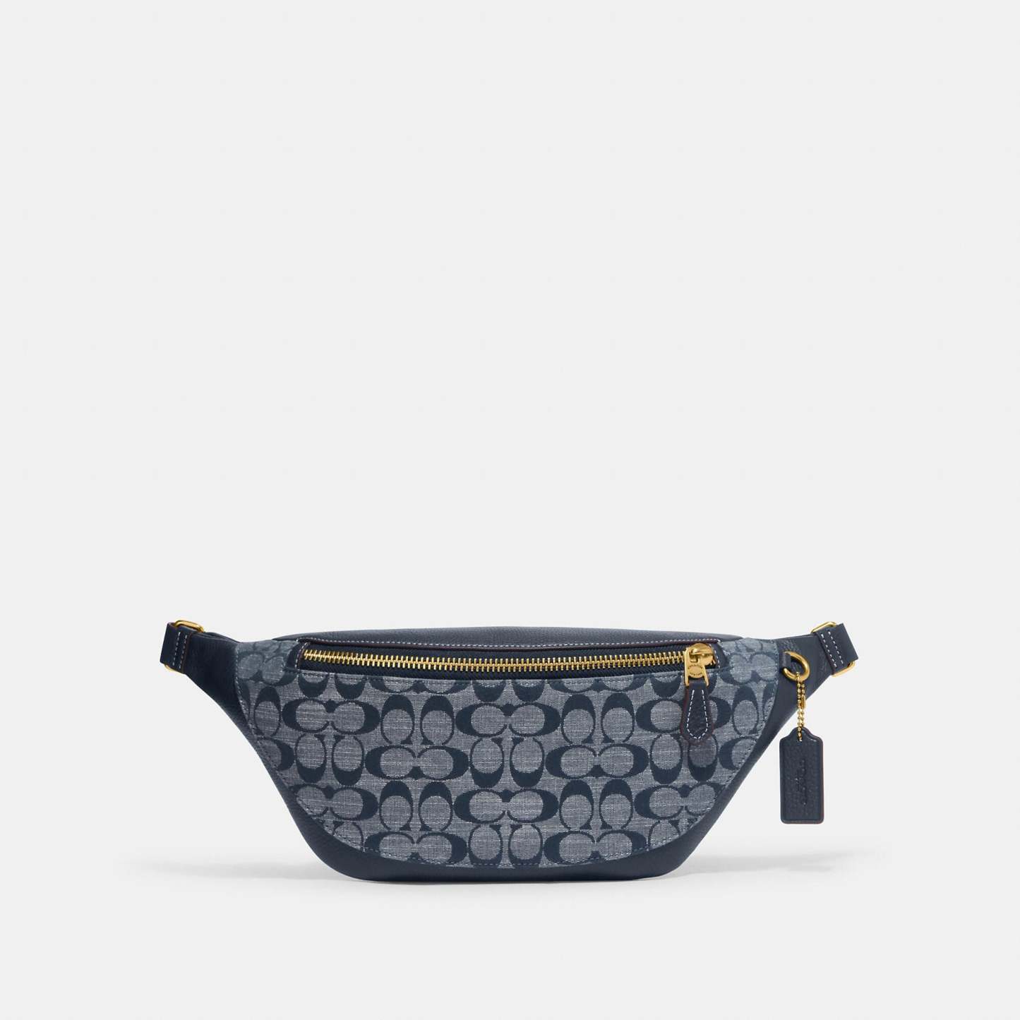 Signature chambray and refined pebble leather Inside multifunction pocket Zip closure fabric lining Outside zip pocket Adjustable strap with 31 3/4 length for wear at waist 13 (L) x 6 1/2 (H) Style No. CG994 | Outlet Warren Belt Bag In Signature Chambray - Red
