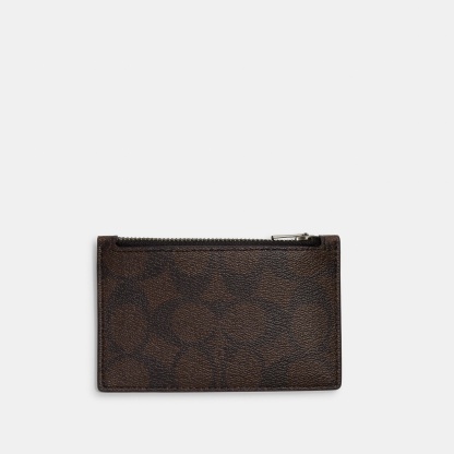 Signature coated canvas and refined calf leather Five credit card slots Zip pocket 5 (L) x 3 1/4 (H) Style No. C9995 | Outlet Zip Card Case In Blocked Signature Canvas - Beige