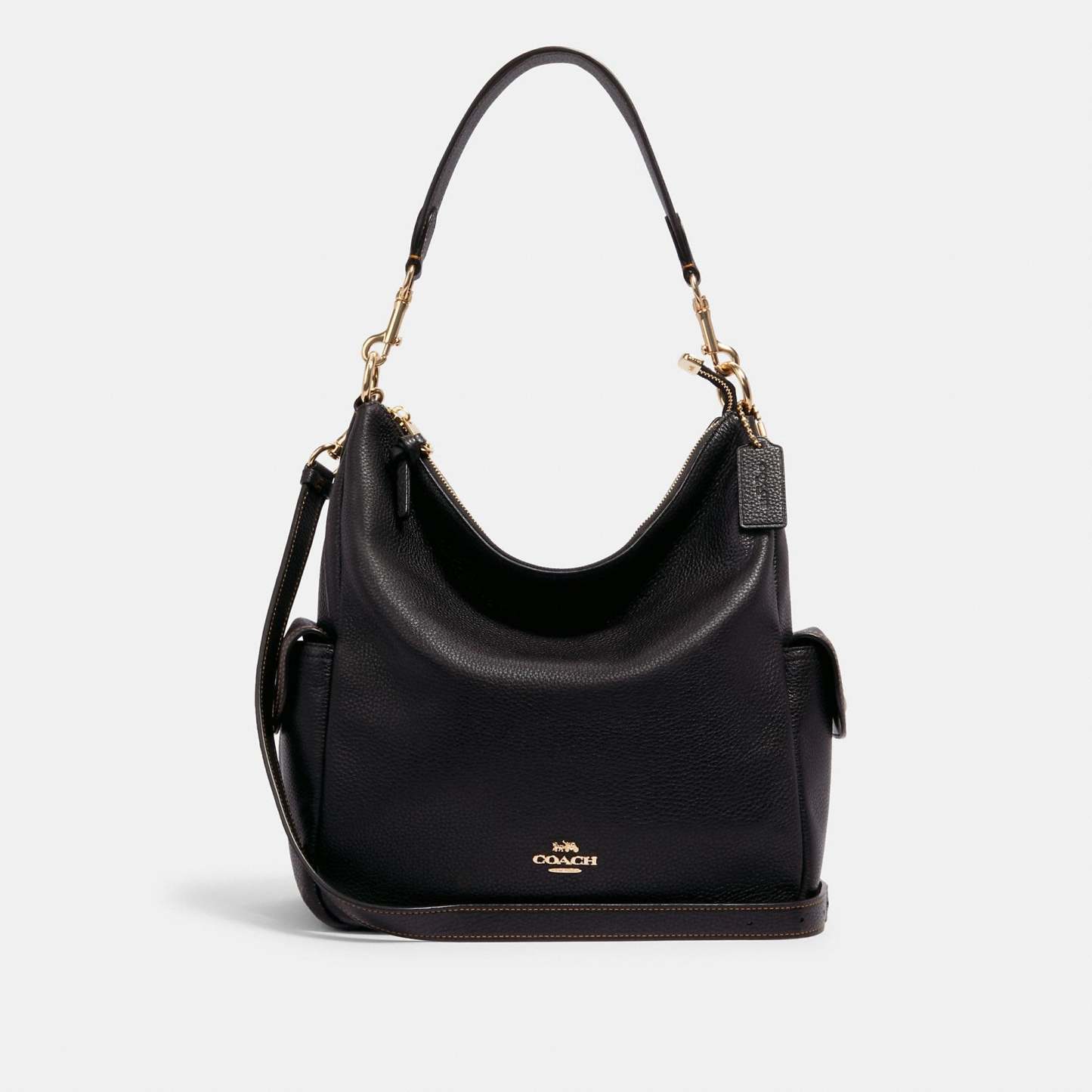 Refined pebble leather Inside zip pocket Zip-top closure fabric lining Detachable handle with 7 drop Outside zip and snap pockets Detachable strap with 20 3/4 drop for shoulder or crossbody wear 10 3/4 (L) x 11 3/4 (H) x 5 1/4 (W) Style No. 6152 | Outlet Pennie Shoulder Bag - Black