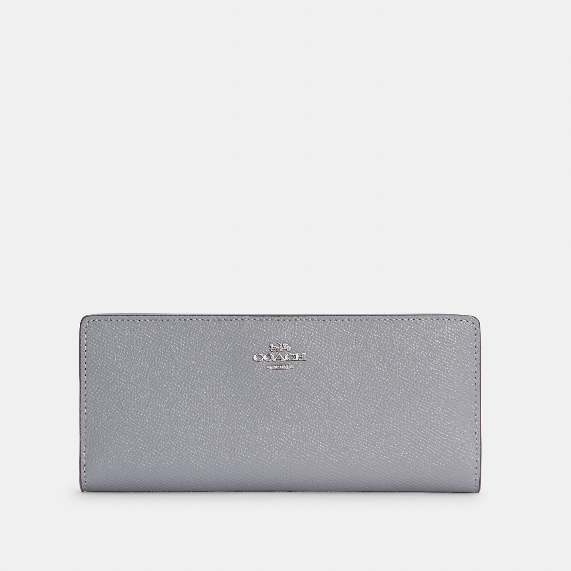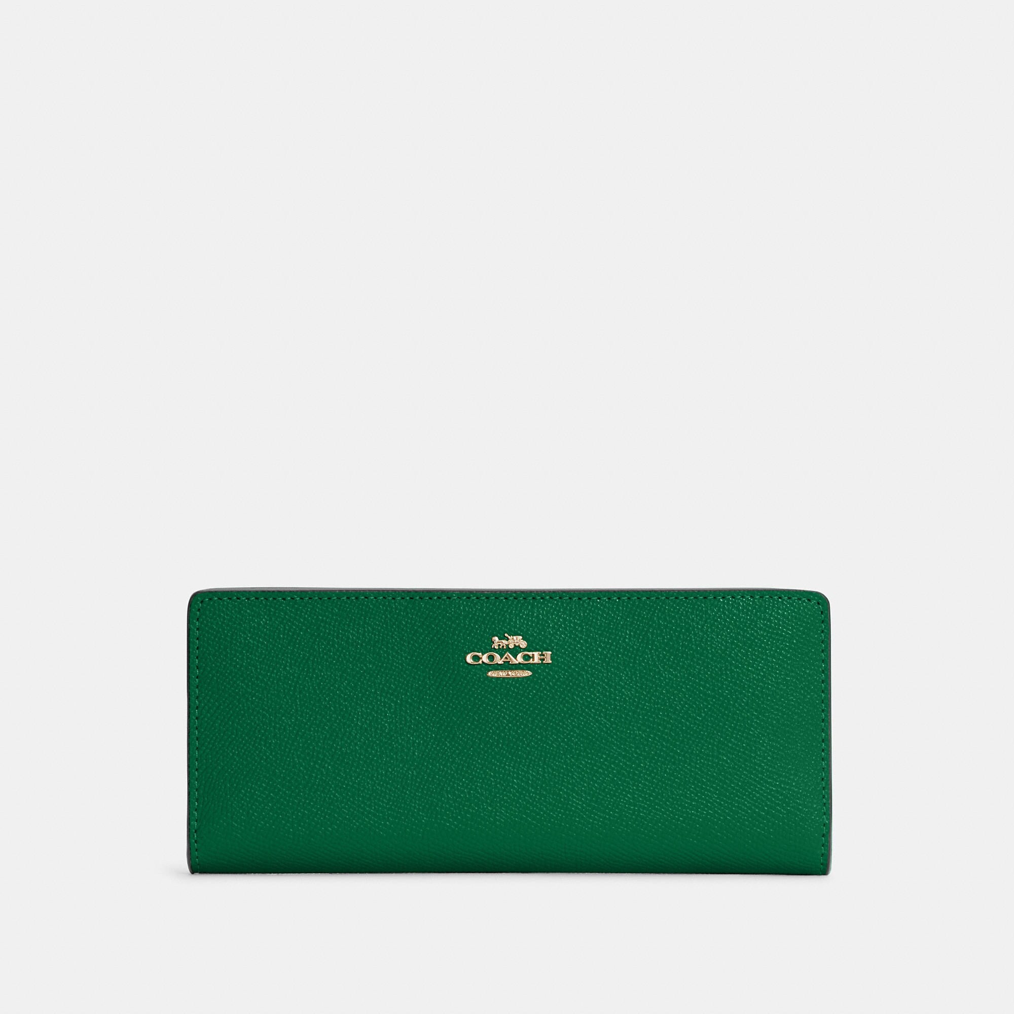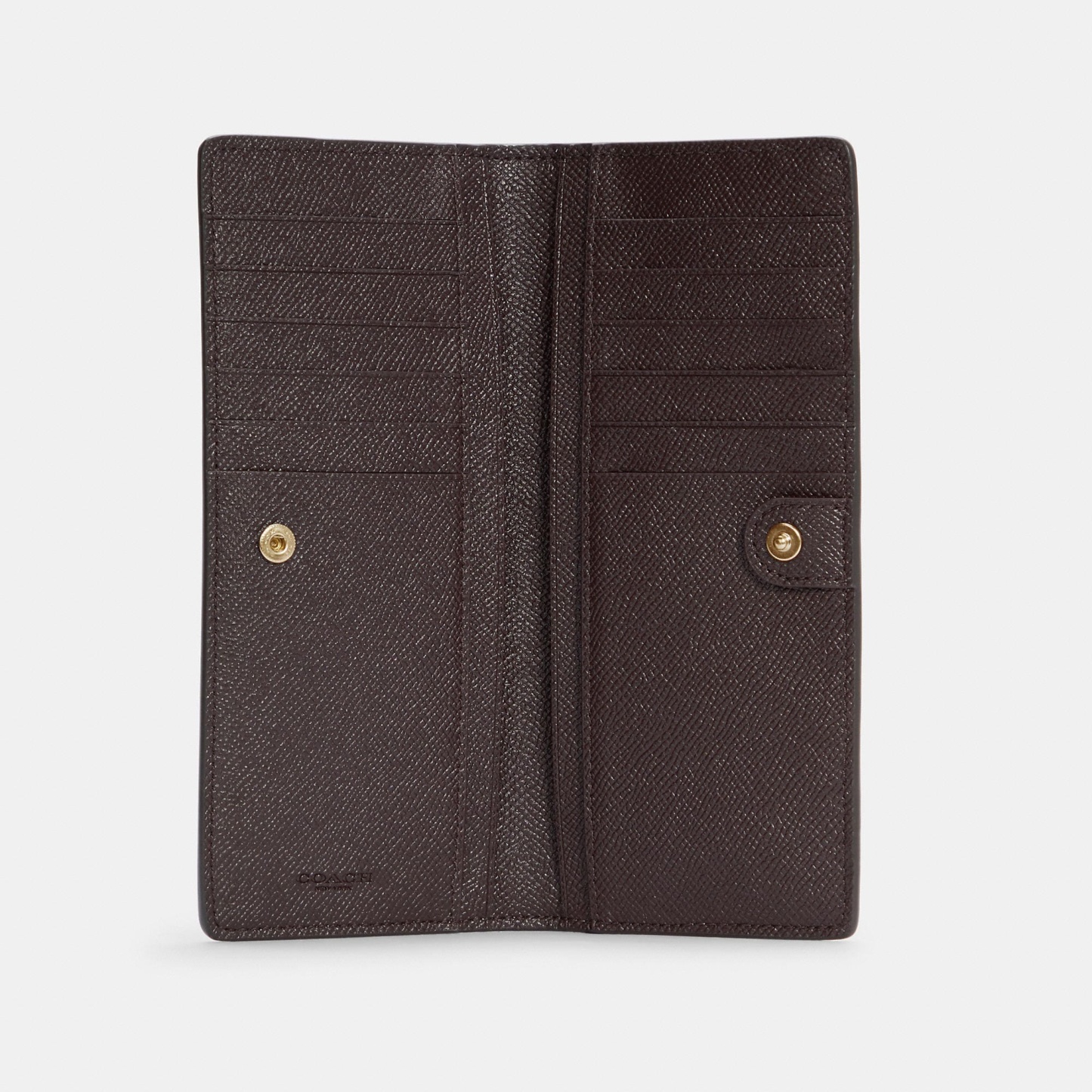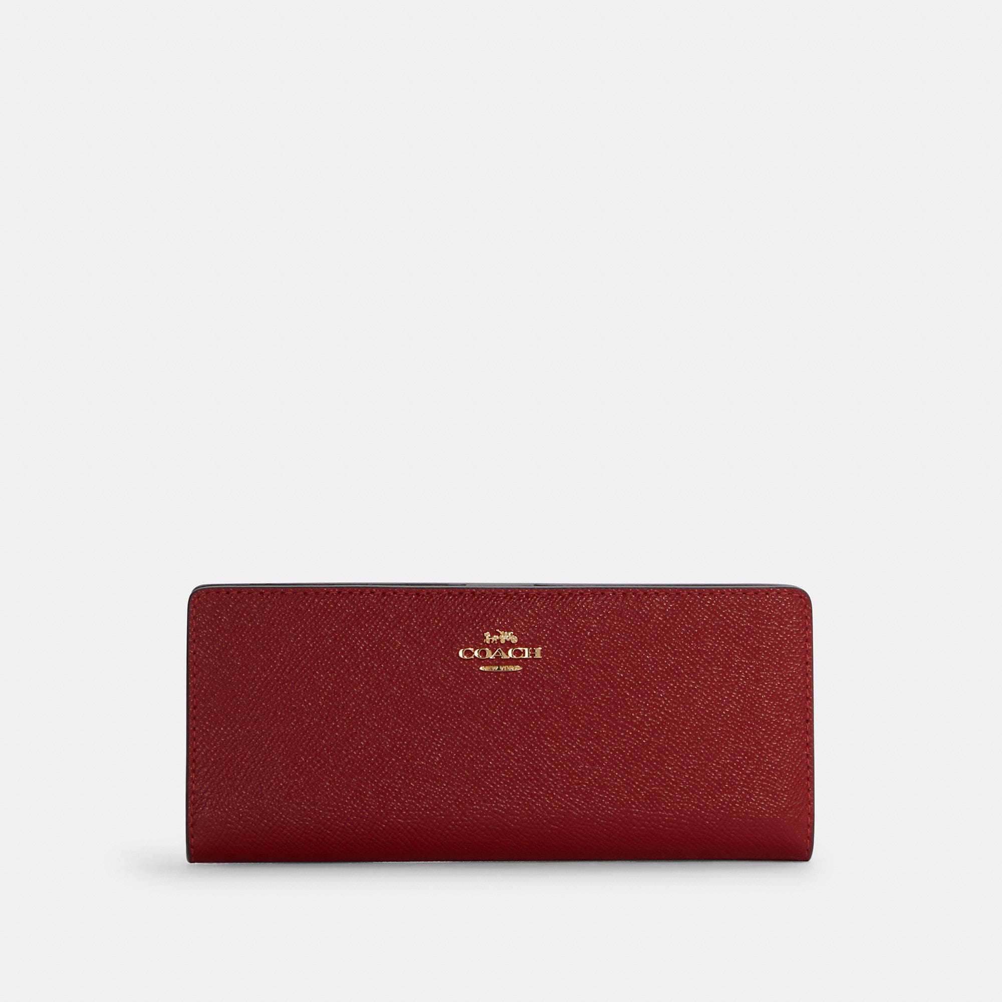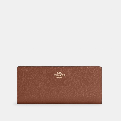 Crossgrain leather 12 credit card slots Full-length bill compartments Snap closure Outside zip pocket 7 1/2 (L) x 3 1/2 (H) x 1/2 (W) Style No. C3440 | Outlet Slim Wallet - Brown