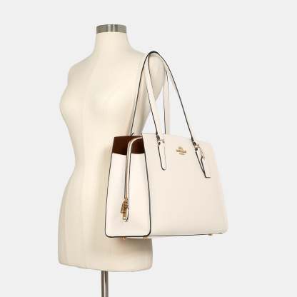 Double face crossgrain leather Fits a 15 laptop Inside cell phone and multifunction pockets Zip closure fabric lining Side open compartments Handles with 10 drop Four protective feet at base 15 3/4 (L) x 11 1/2 (H) x 6 (W) Style No. C4077 | Outlet Tatum Carryall 40 - White