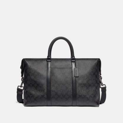 Signature coated canvas with smooth leather details Inside zip cell phone and multifunction pockets Inside laptop sleeve with secure tab Zip closure fabric lining Handles with 7 drop Outside zip and slip pockets Detachable strap with 25 drop for shoulder or crossbody wear 17 3/4 (L) x 14 1/2 (H) x 7 3/4 (W) Style No. F76811 | Outlet Trekker Bag In Signature Canvas - Black