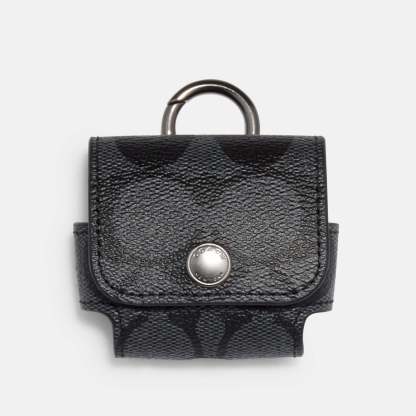 Signature coated canvas and refined calf leather Snap closure, leather lining Attached hinged key ring 2 1/2In (L) x 2In (H) x 1In (W) Fits AirPod Pro AirPods? is a trademark of Apple, Inc.