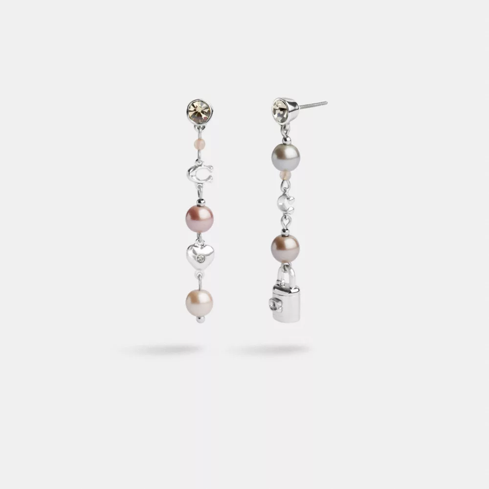 COAthtCH Pearl And Padlock Mismatch Linear Earrings