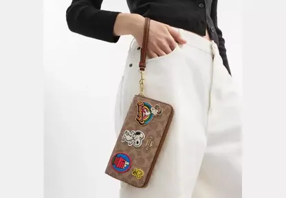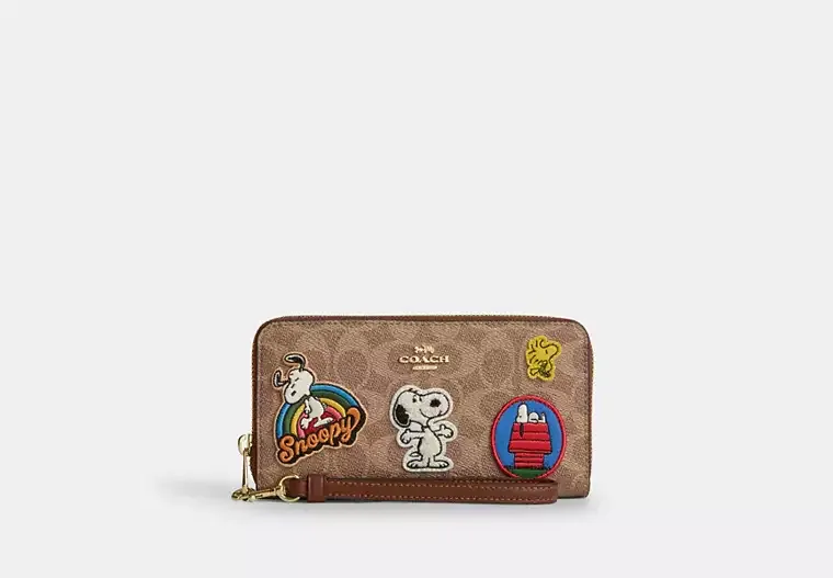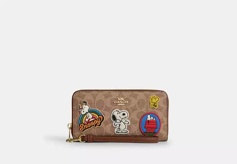 Coach X Peanuts Long Zip Around Wallet In Signature Canvas With Patches