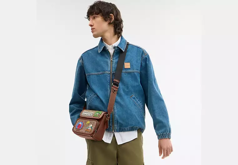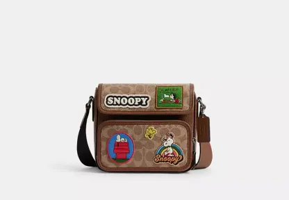 Coach X Peanuts Sullivan Flap Crossbody Bag In Signature Canvas With Patches