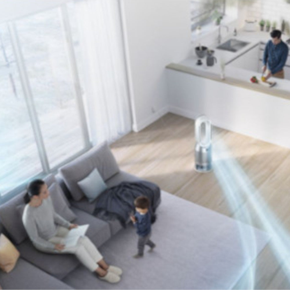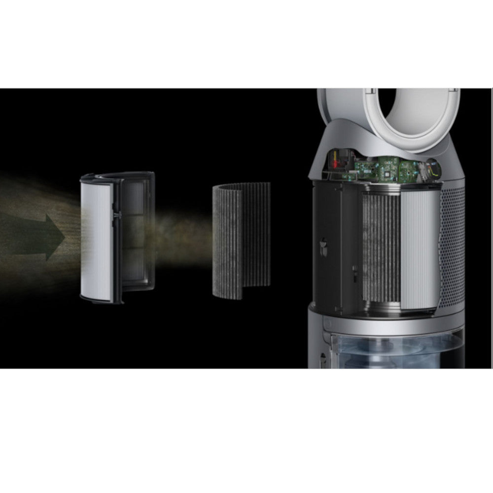 The Dyson purifier humidifier is engineered to help improve your air quality. Its activated carbon filter neutralises gases, its HEPA filter captures 99.97% of particles as small as 0.3 microns. Air Multiplier™ technology then projects purified, humidified air throughout the room¹ – cooling you when required.