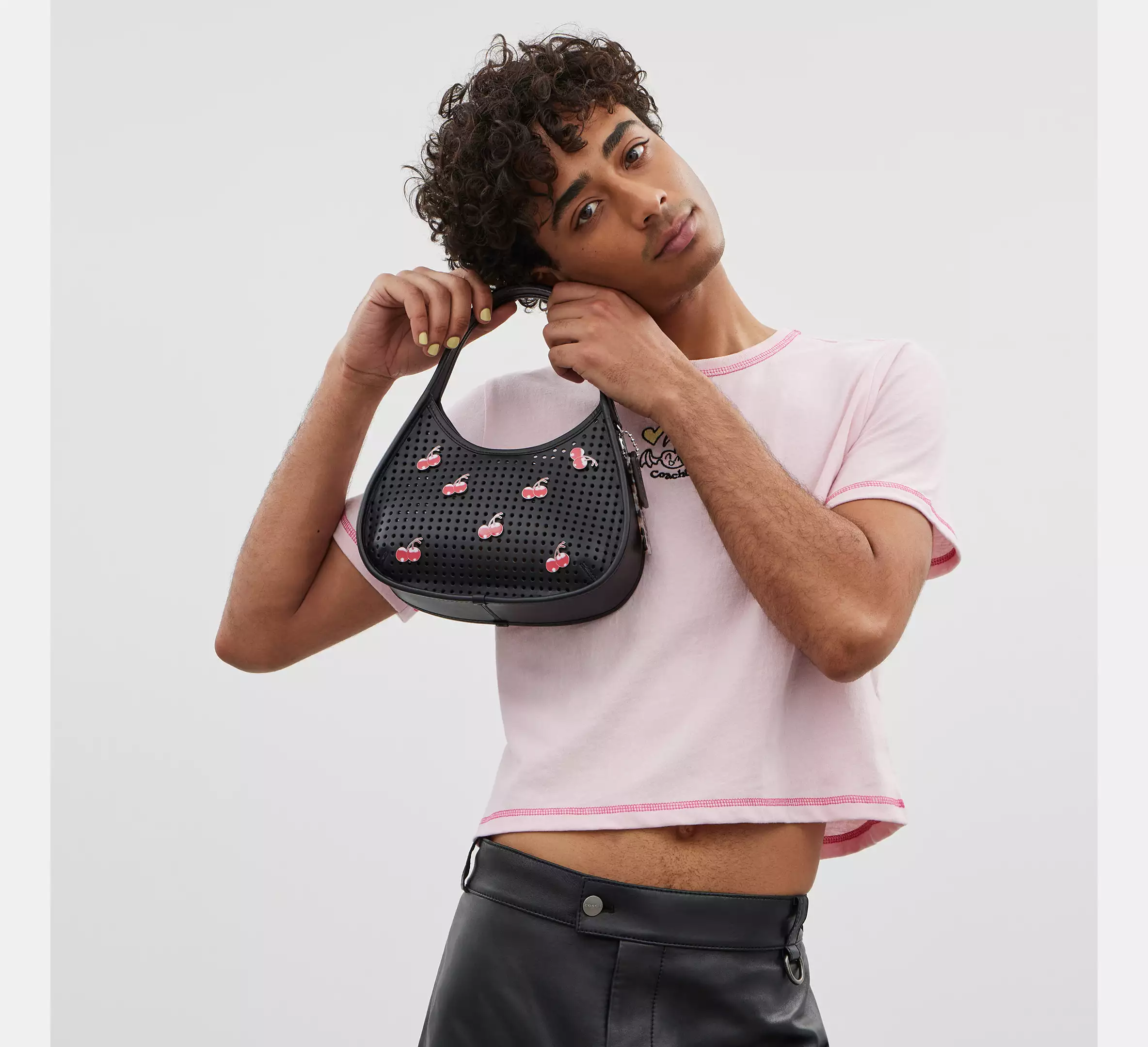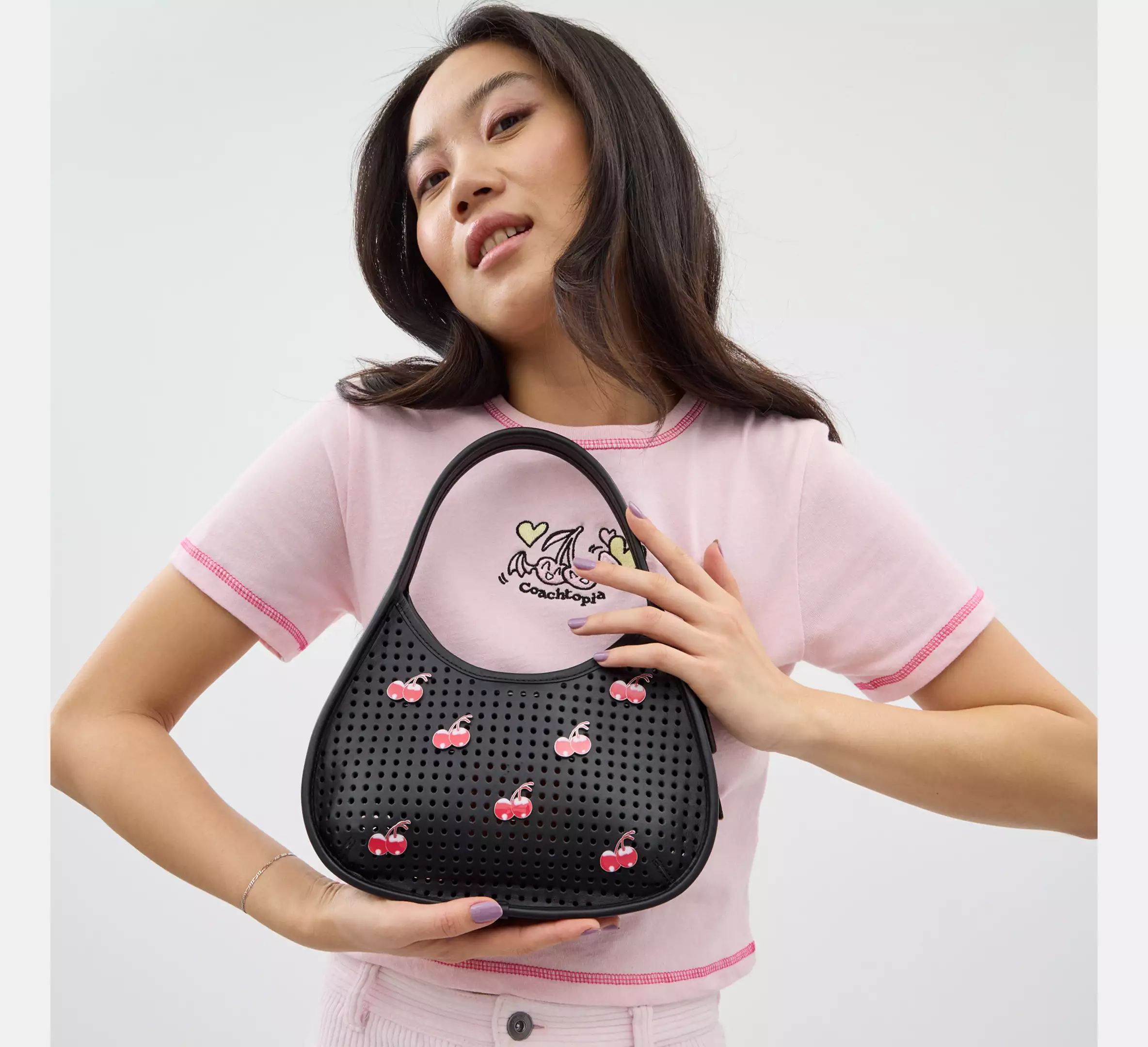 Ergo Bag In Perforated Upcrafted Leather With Cherry Pins