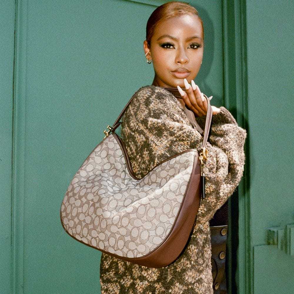 Signature jacquard and smooth leather