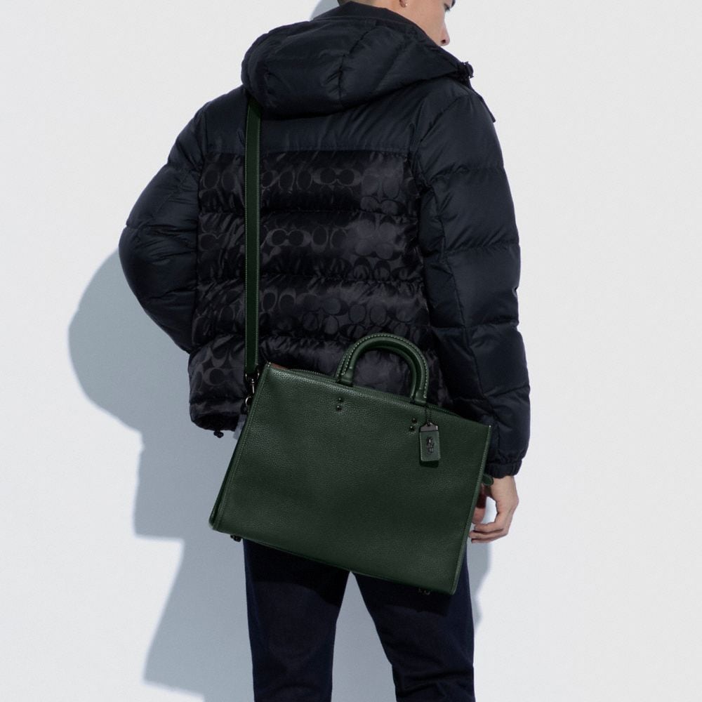 Detachable strap with 23 1/2" drop for shoulder or crossbody wear