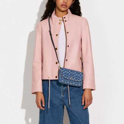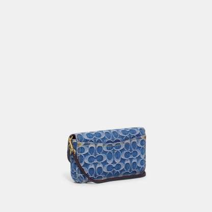 Signature denim and polished pebble leather