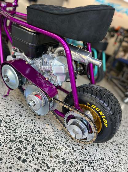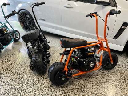 Our world famous fat wheeled minibike. For the true petrol head and Minibike enthusiast! These have thrilling acceleration with a top speed of 70kph. Hustler Minibikes are designed for off road or race track use only and can not be road registered. The ultimate pit bikes!